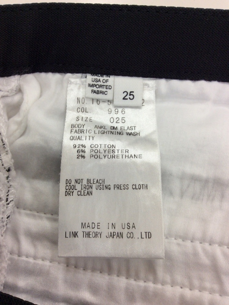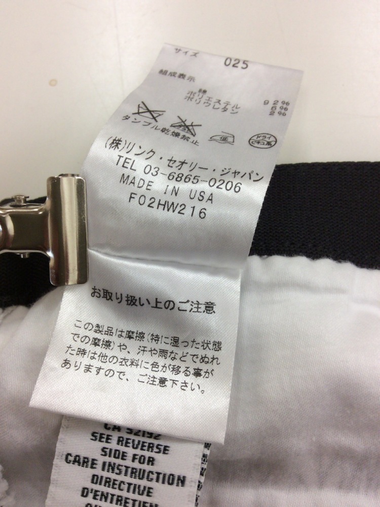 このお品は春夏向けです。 コットン92%、ポリエステル6%、ポリウレタン2% アメリカ製 ウエスト幅は最大39cmほどまで伸ばせます。 |