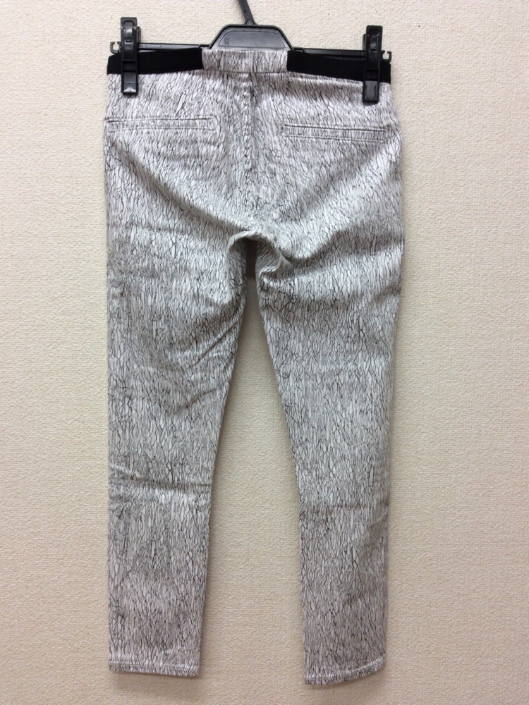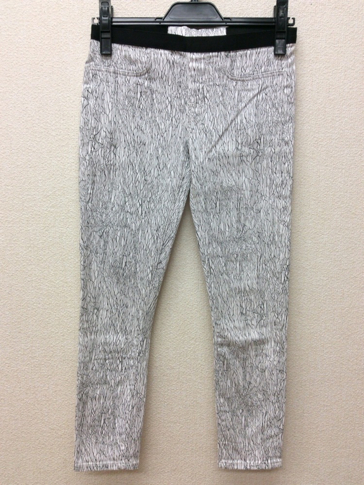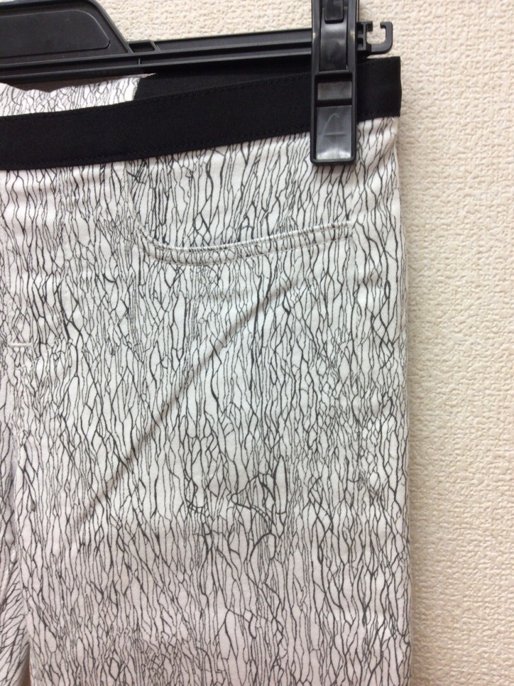 管理番号:99^130547 ヘルムート・ラング 白地に黒柄のパンツ 細い根っこや血管のような感じの柄 ウエストゴム 表示サイズ:25 実寸(参考)