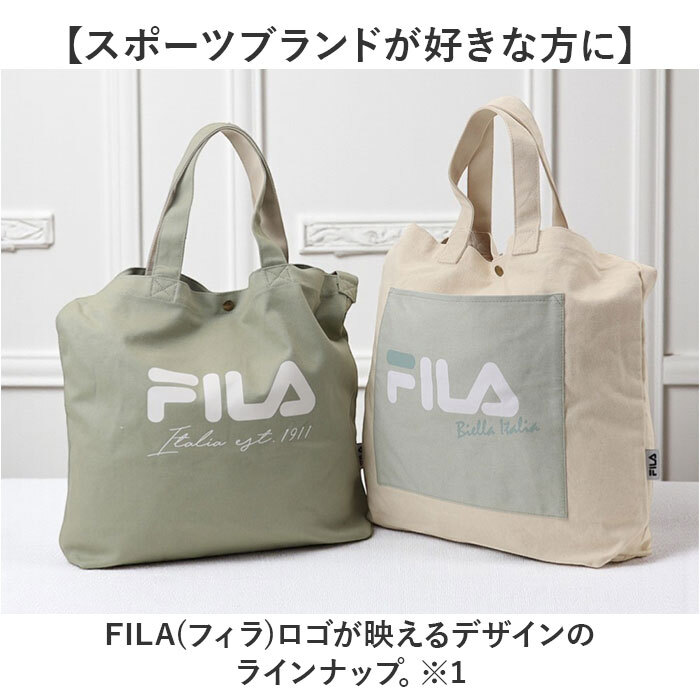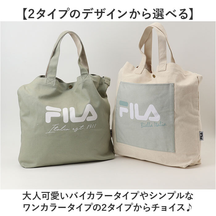 商品説明 | ・・【バイカラーとロゴが可愛い】 ・・2タイプから選べる!FILAのロゴを組み合わせた2WAYトートバッグが新発売。 ・【スポーツブランドが好きな方に】 ・FILA(フィラ)ロゴが映えるデザインのラインナップ。※1 ・【2タイプのデザインから選べる】 ・大人可愛いバイカラータイプやシンプルなワンカラータイプの2タイプからチョイス♪ ・【ざっくりと収納できる】 ・書類ケースも収納可能なB4サイズのメイン収納。ザクザクと小物を入れられるのも魅力。 ・【お弁当箱やポーチもin】 ・マチ幅を設け、お弁当箱やポーチなどかさばるアイテムも一緒に入る。 ・【サブバッグにも】 ・大容量な作りでアウトドアや旅行シーンで使うサブバッグとしても活躍☆ ・【内装ポケットも搭載】 ・鍵など迷子になりがちな小物の定位置にピッタリな吊り下げタイプのポケットも搭載。※2 ・【外ポケット付きタイプも】 ・ハンカチや定期入れ、手帳などすぐに取り出せる外ポケット付きタイプもアリ◎※3 ・【斜め掛けや肩掛けもOK】 ・ショルダーベルト付きなので斜め掛け・肩掛けもでき持ち運びしやすい♪ ・【男性も使えるカラーも】 ・男性も使いやすいベーシックカラーもご用意。カップルでお揃いで使うのもオススメ♪ ・【ポケット仕様】 ・メインルーム・・・吊り下げタイプのポケット×1 ・フロント・・・オープンポケット×1(バイカラータイプのみ) ・【注意事項】 ・※1 タイプによりロゴデザインが異なります。 ・※2 ワンカラータイプ:ファスナーポケット バイカラータイプ:オープンポケット(タイプによりポケット仕様が異なります。) ・※3バイカラータイプのみ外ポケットが付いています。 |