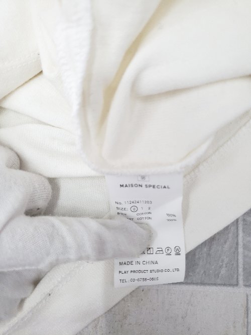 ◇ ⊇ MAISON SPECIAL メゾンスペシャル クルーネック オーバーサイズ 長袖 Tシャツ サイズ0 ホワイト メンズ E