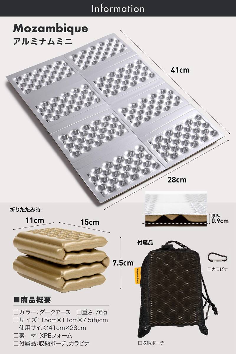 Mozambique(モザンビーク) アウトドアマット 登山 キャンプ 座布団 アルミ レジャーマット コンパクト 折りたたみシート