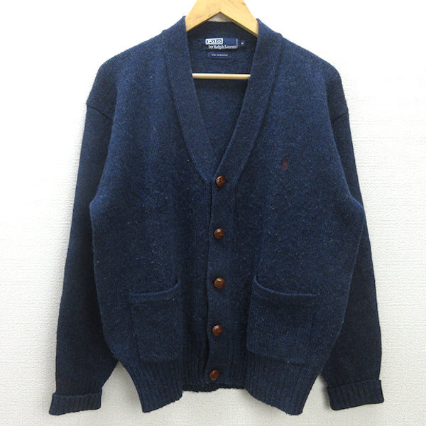 H■90s■ポロ ラルフローレン/POLO Ralph Lauren HAND KNIT 包みボタン ニットカーディガン【M】紺/MENS■23【中古】