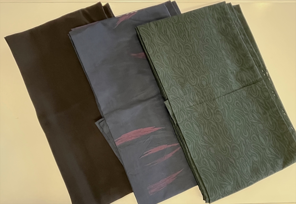 花とら●リサイクル着物 夏着物 3枚まとめて 紗 絽 喪用 リメイク 素材 深緑 紺 黒   250812