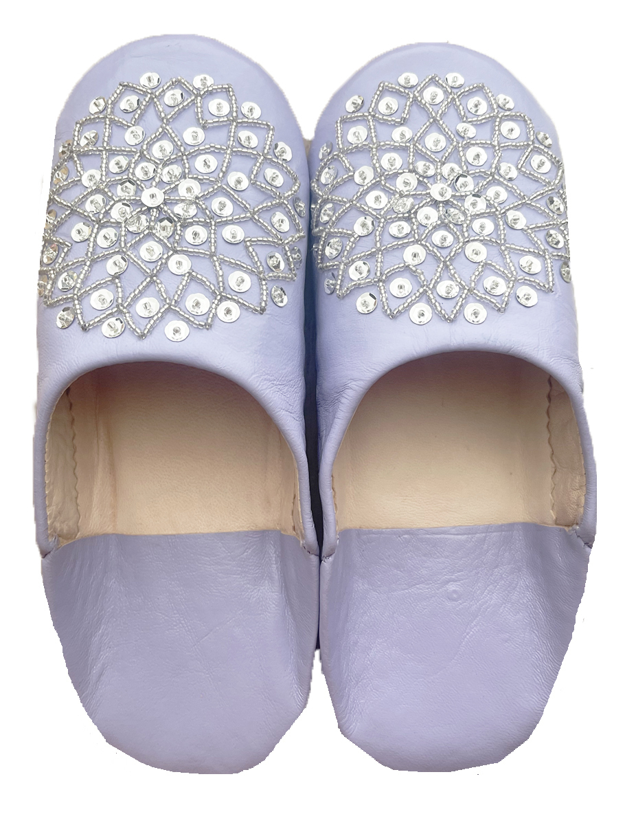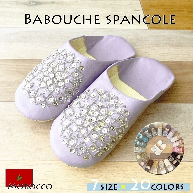 当店のバブーシュはすべてモロッコの職人さんが手作りで作製したものです。工場で作った大量コピー製品ではないので小さな傷・汚れ、染色の際のむら、ボンドのはみだし、ボールペンの跡、若干のサイズの誤差、同じデザインでも左右非対称、入荷時によって画像とのデザインやスパンコールの色の違いなどのハンドメイド感についてはご了承のうえ、ご注文をお願いいたします。上記のことを踏まえての価格設定となっております。