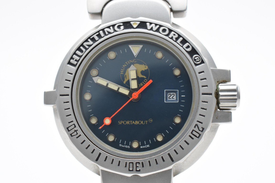 HUNTING WORLD ハンティングワールド 腕時計 メンズ クォーツ式 3針 デイト ブルー文字盤 防水時計 ステンレススチール