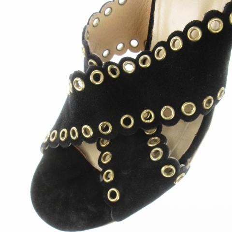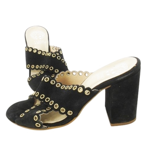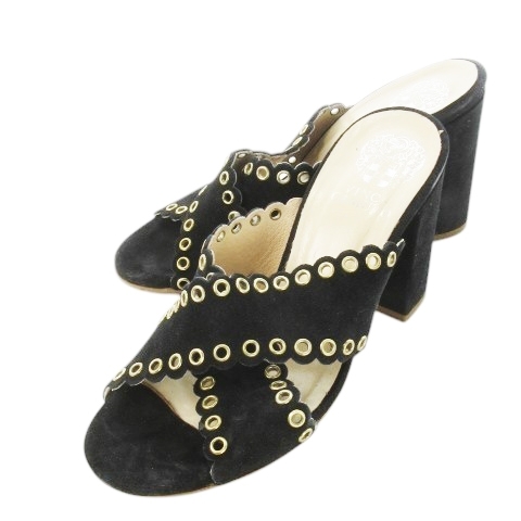 ヴィンスカムート VINCE CAMUTO ミュール サンダル スエード スカラップ ハトメ 36 23.0cm 黒 ブラック /CK31 レディース