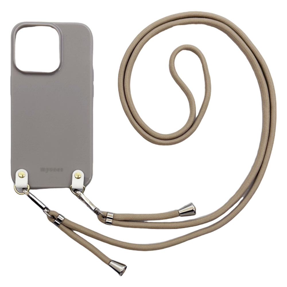 キッズケータイ KY-41C(くすみグレー/ベージュ)ひも TPU ストラップ 肩掛け 首かけ 斜めが スマホケース かわいい