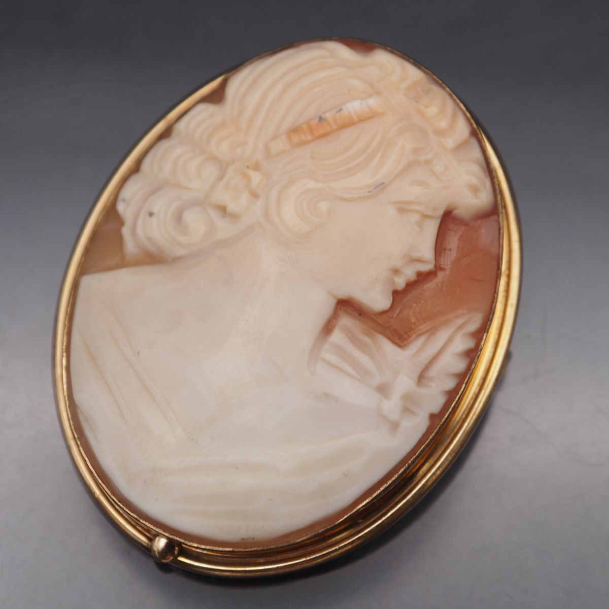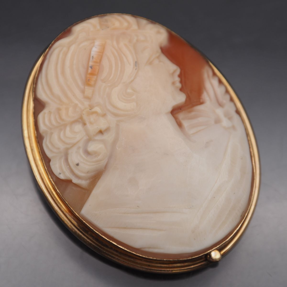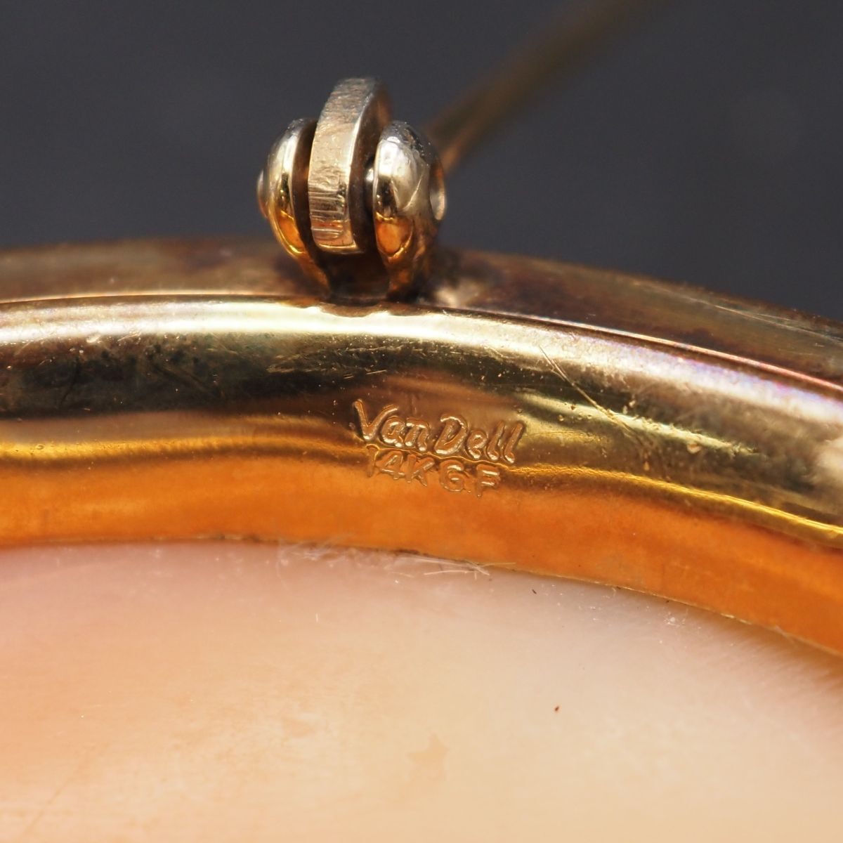 C402 Van Dell ヴァンデル シェルカメオ 14KGF刻印 金張 ブローチ 女性横顔 ゴールド デザイン ヴィンテージ