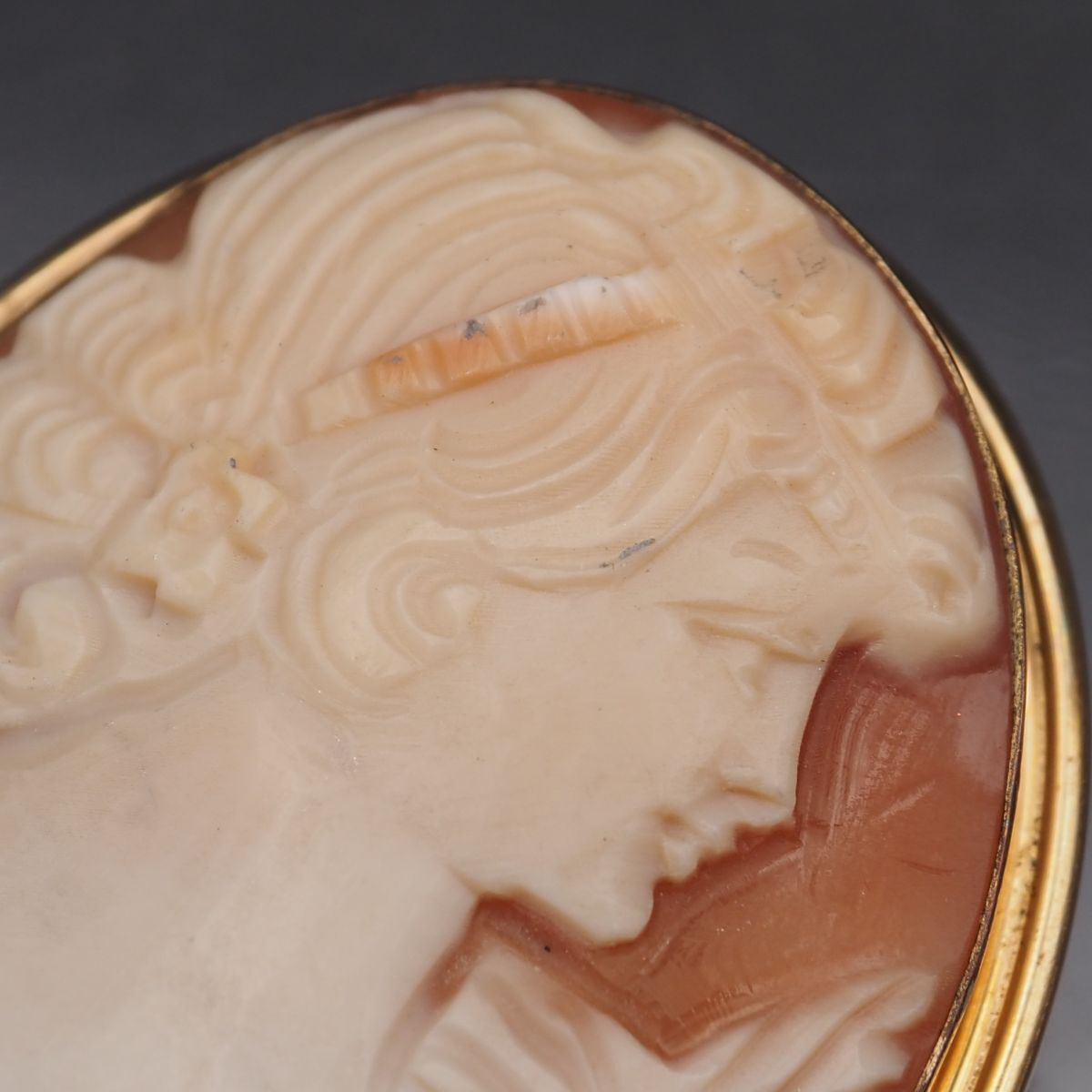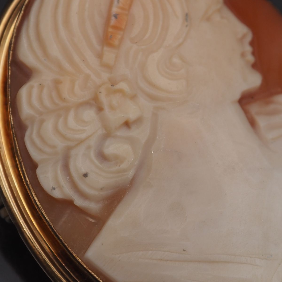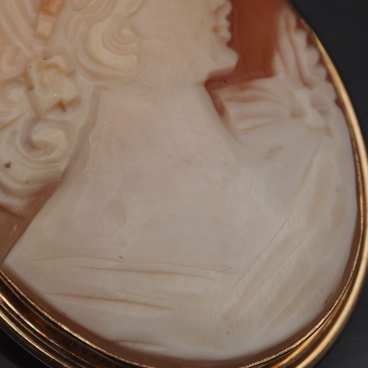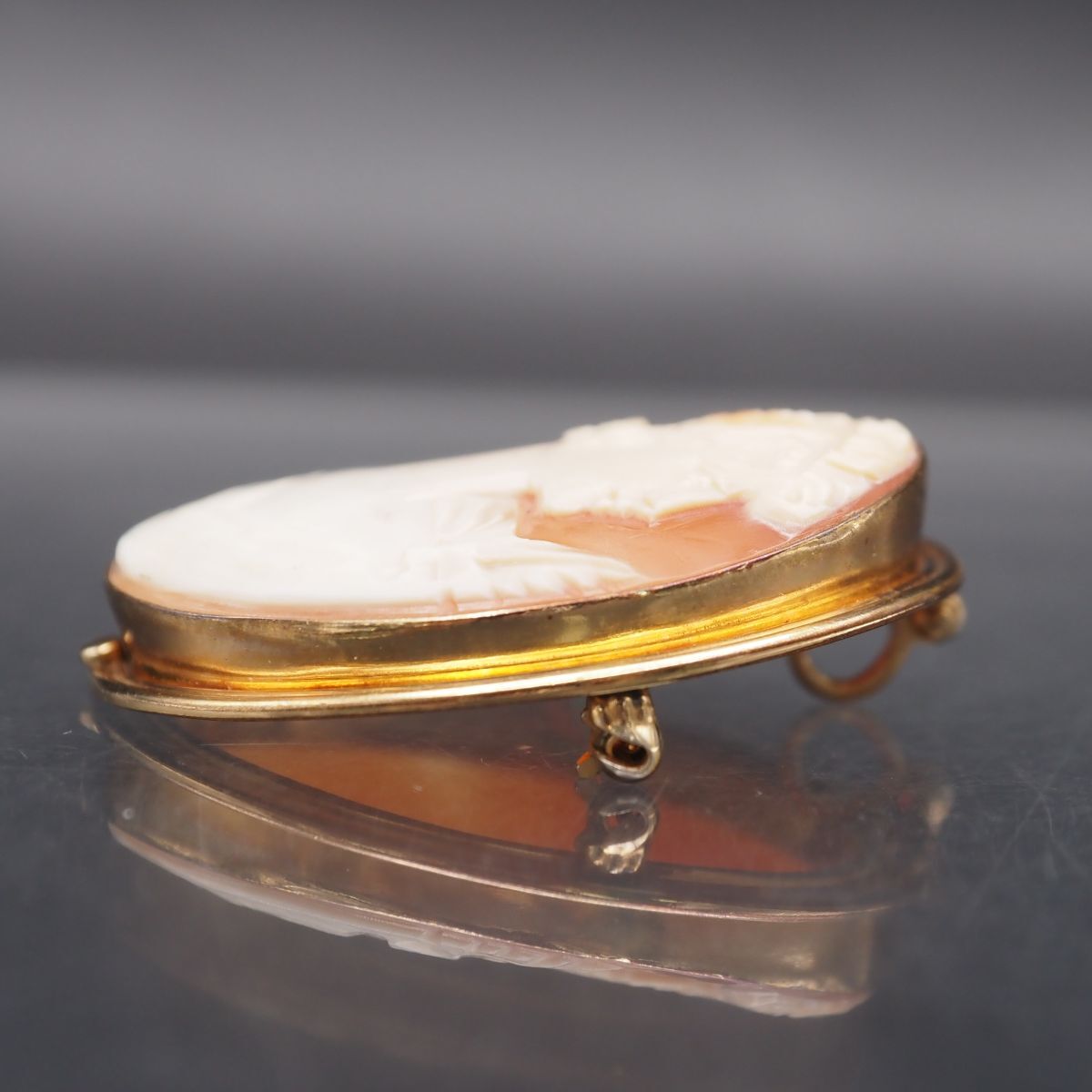 C402 Van Dell ヴァンデル シェルカメオ 14KGF刻印 金張 ブローチ 女性横顔 ゴールド デザイン ヴィンテージ