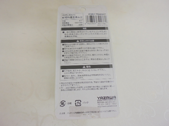 商品名 YAZAWA 省エネクリプトン球 2個入×3パック