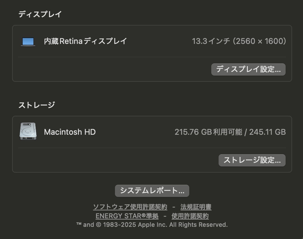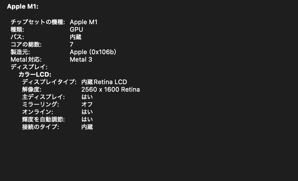 ・ディスプレイ:Retina 13.3インチ LEDバックライトディスプレイ(2,560 x 1,600)