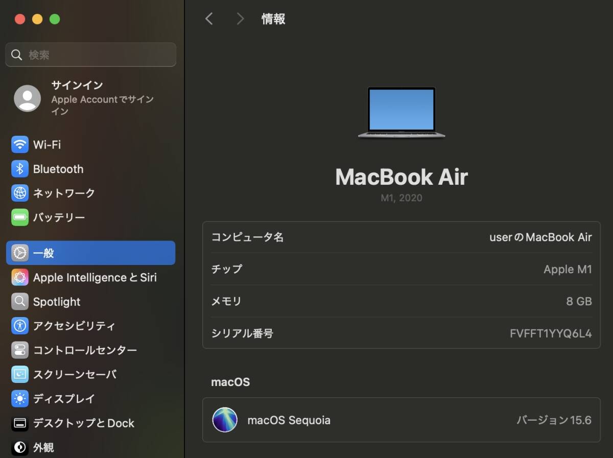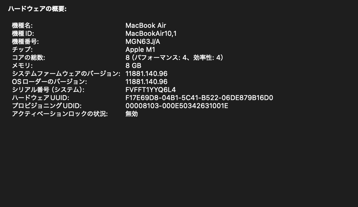 MacBook Air(M1,2020)256GB/8GB〈MGN63J/A〉④