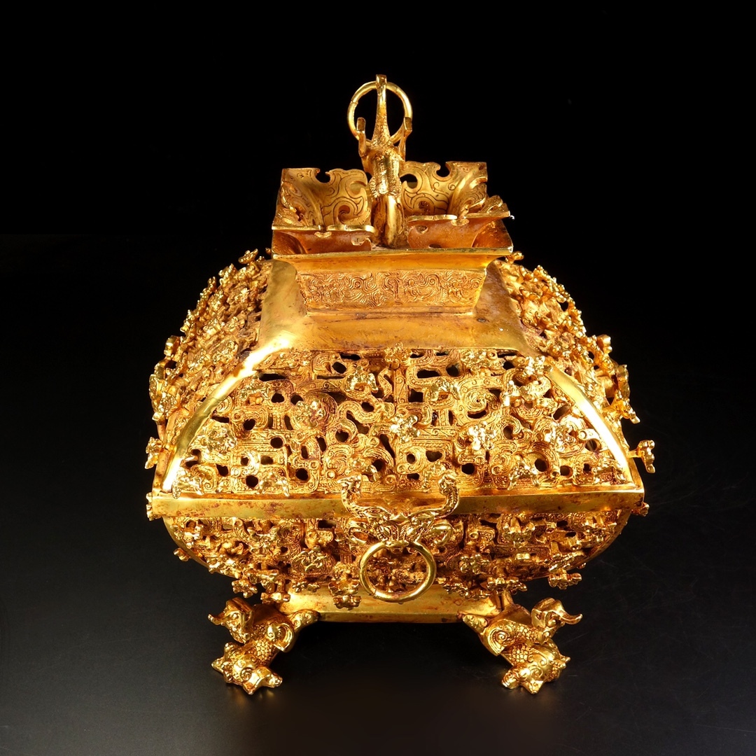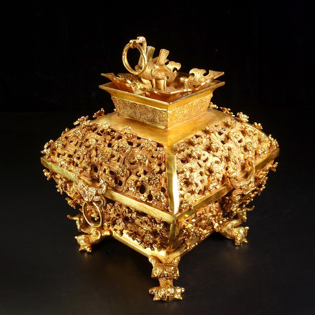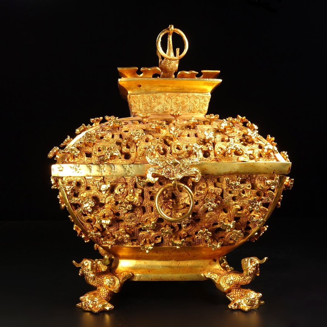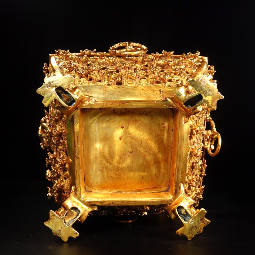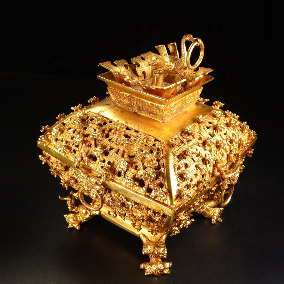 唐物 漢代 銅塗金 鏤空 置物 銅製品 銅器 極細工 中国古玩 骨董品 古美味 D68