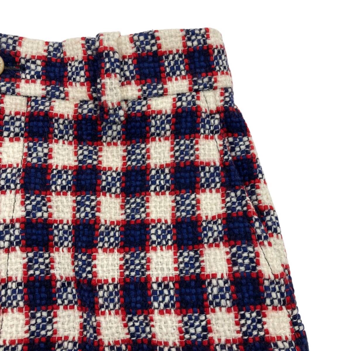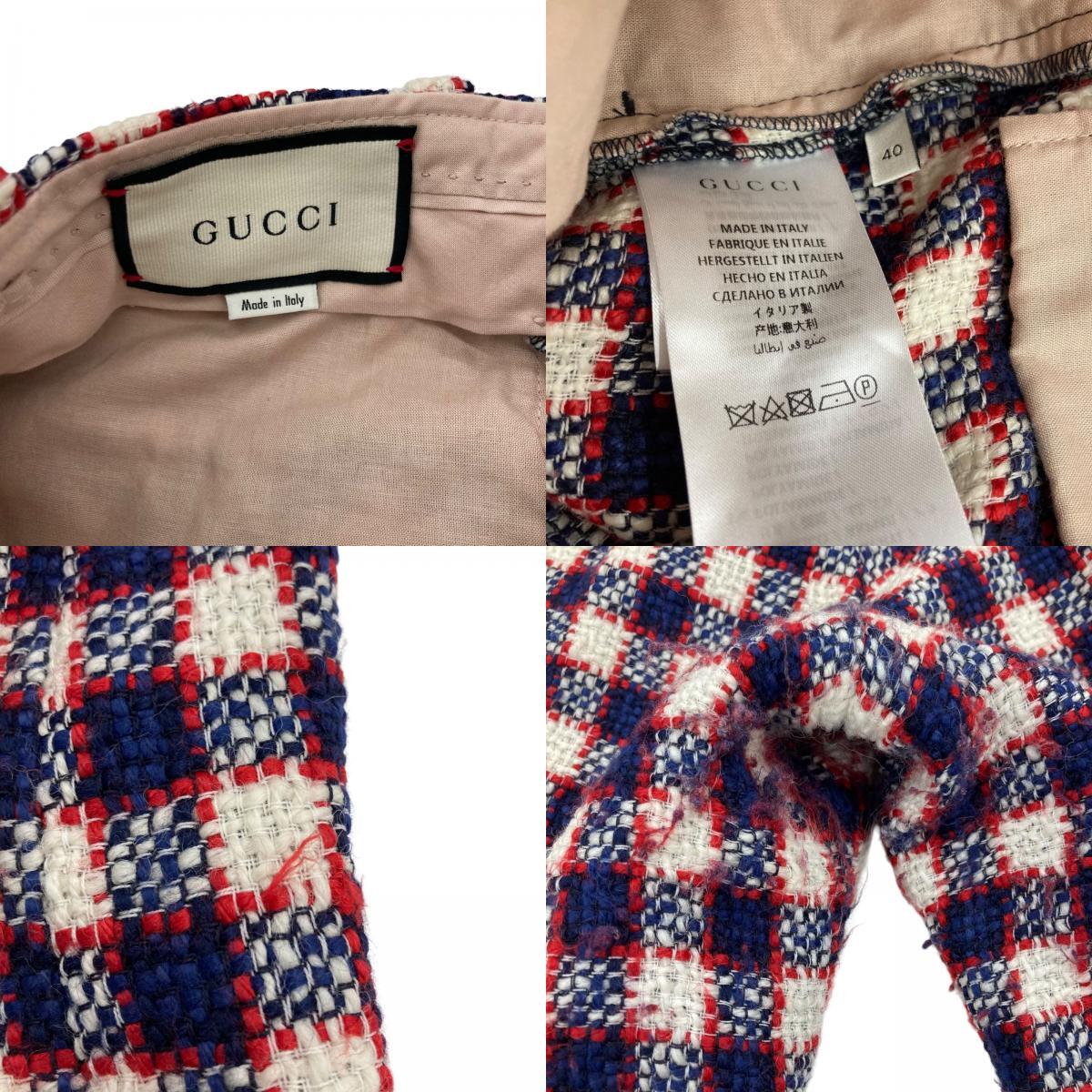 186005 現状品 GUCCI グッチ GUCCI パンツ S マルチカラー レッド ワイドパンツ チェック柄 レッド マルチカラー 40サイズ