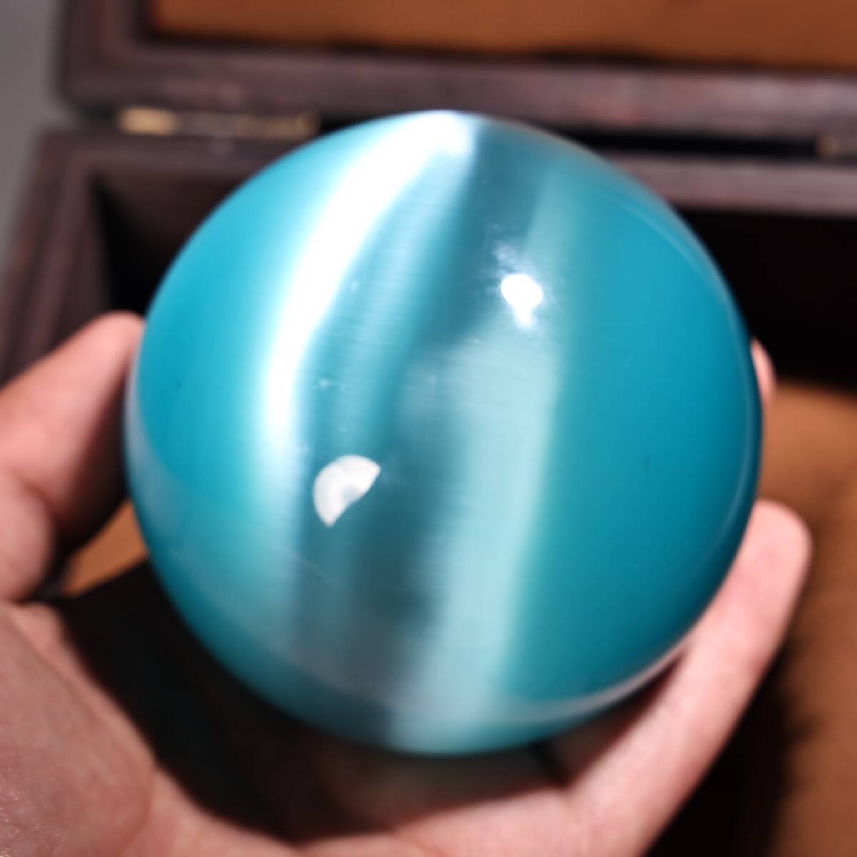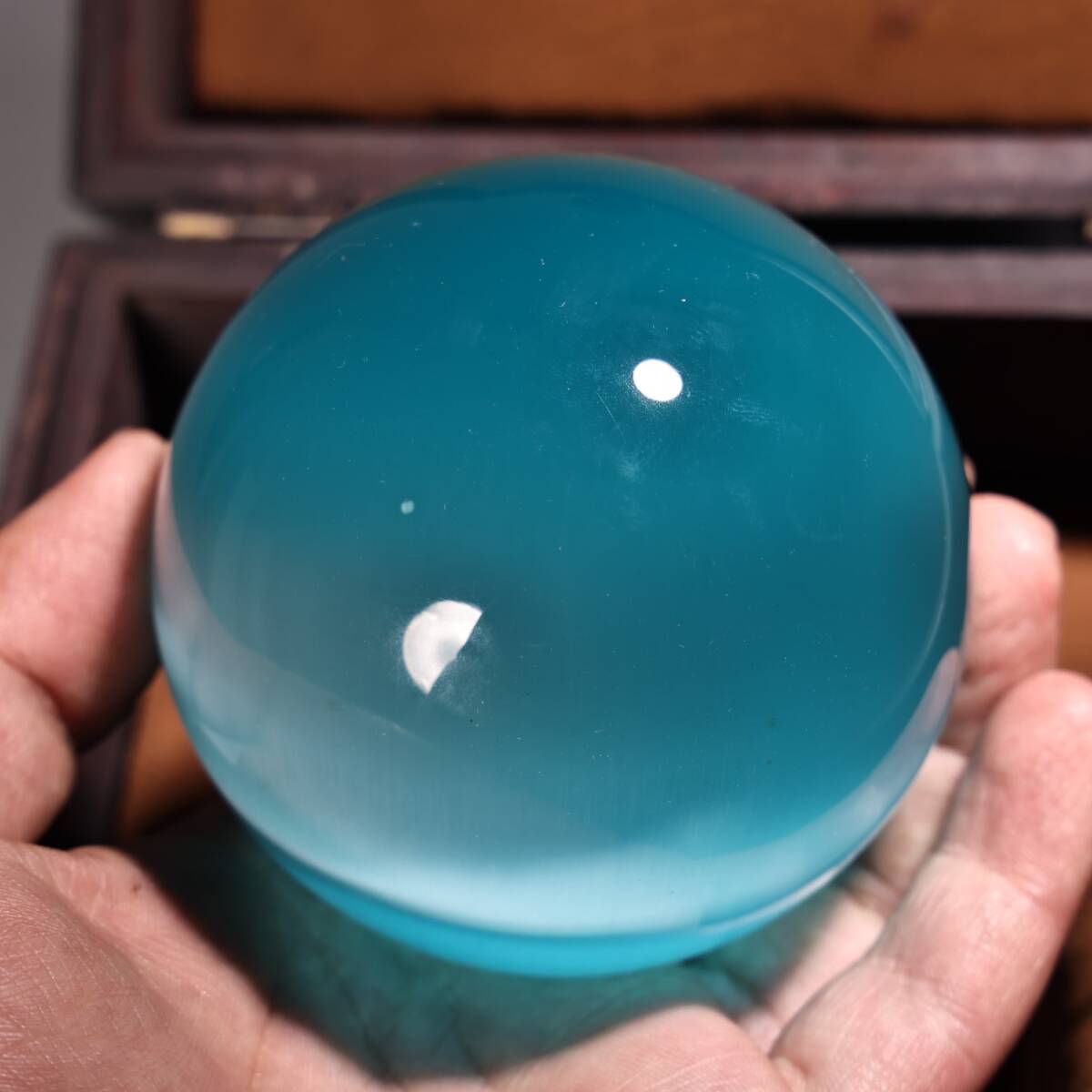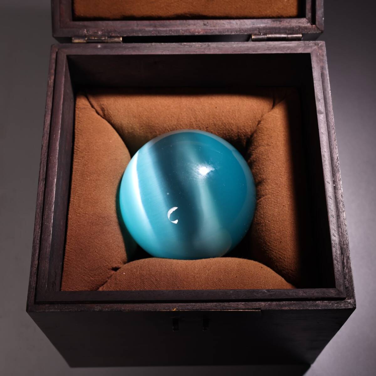 清時代 古猫目石彫 藍猫眼球 球 手把件 手球 把玩 黑檀木盒 極細工 古賞物 古美味 中国唐物 時代物 骨董 中国古美術
