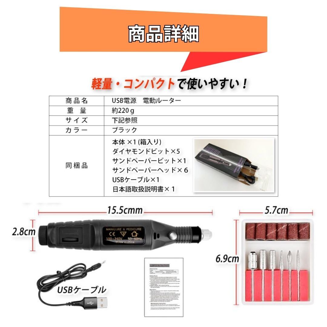 彫刻・研磨・ネイル・DIYに大活躍の USB給電式 ミニルーターセット です。