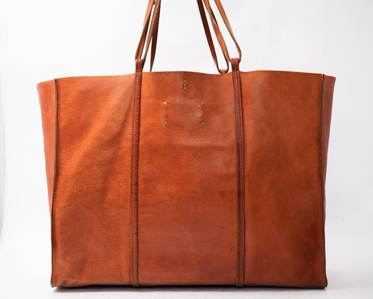 メゾン・マルジェラの11ラインから登場した、特大サイズのレザートートバッグです。ブランドを象徴するカレンダータグと4つのステッチを備えた、アーカイブとしても価値の高い逸品。