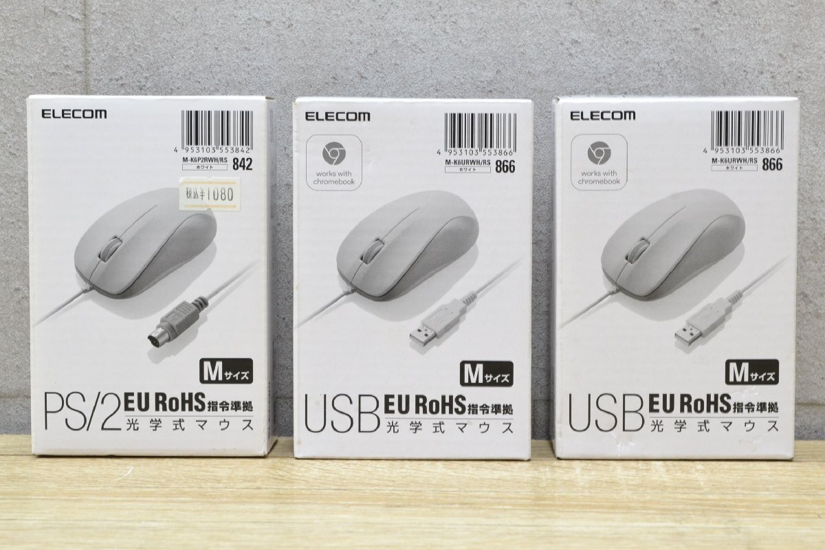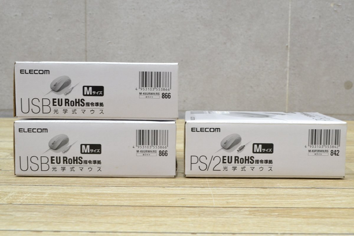 ■W1773■未使用・長期保管品■ELECOM エレコム■光学式 マウス 3点セット■PS/2 EU ROHS 指令準拠 PS/2 1点 USB 2点