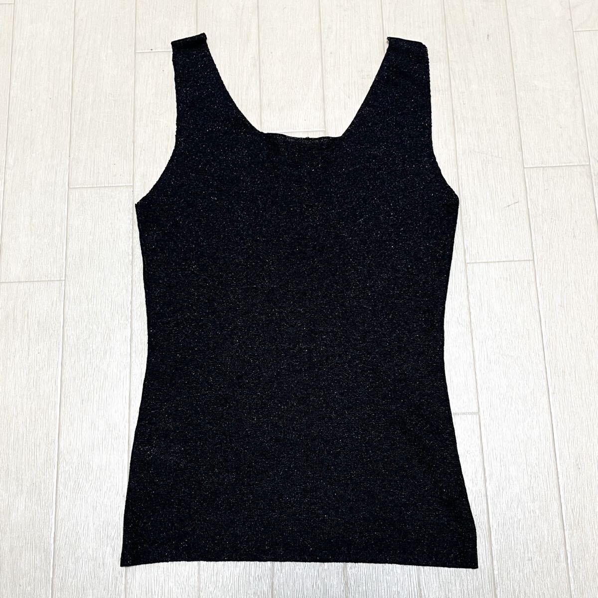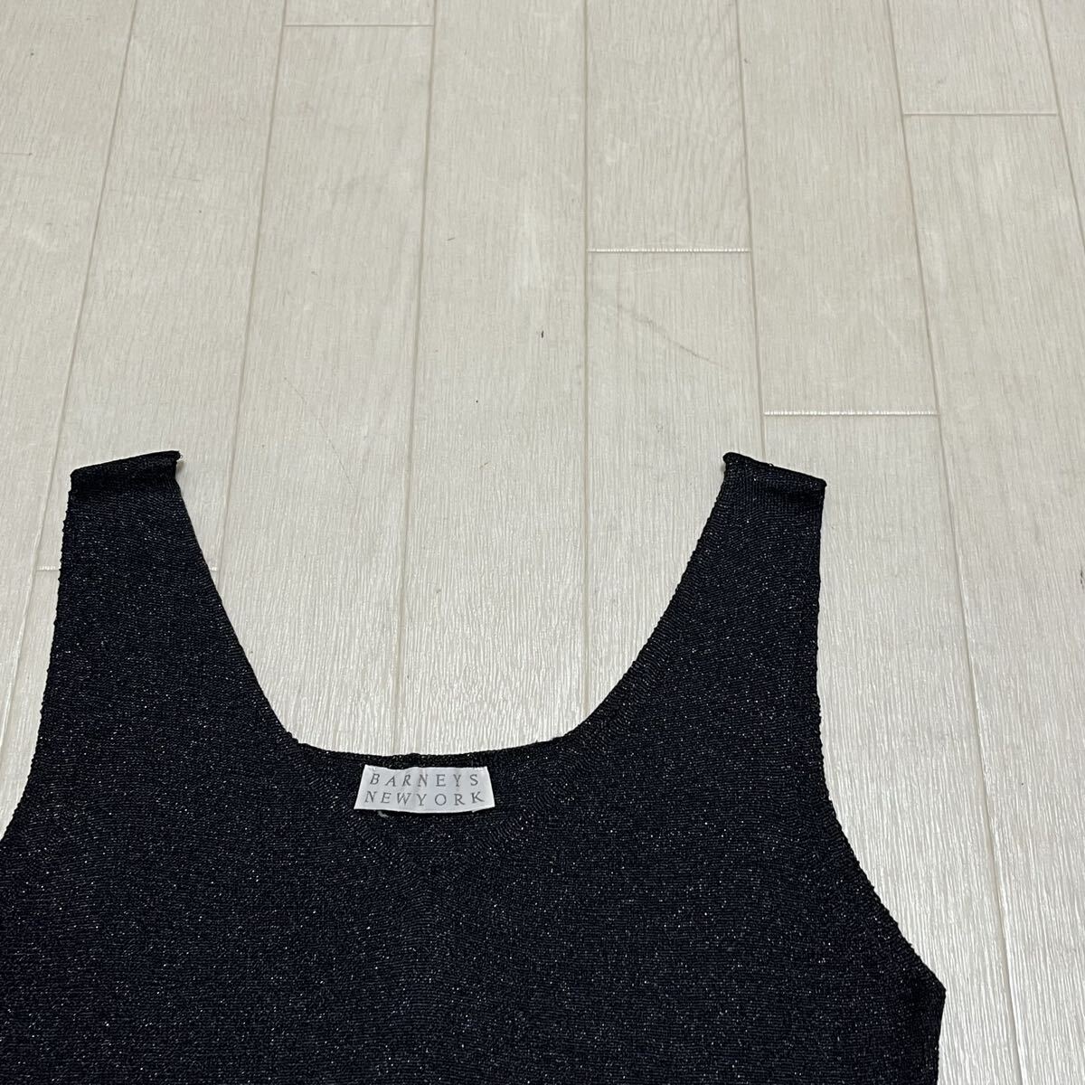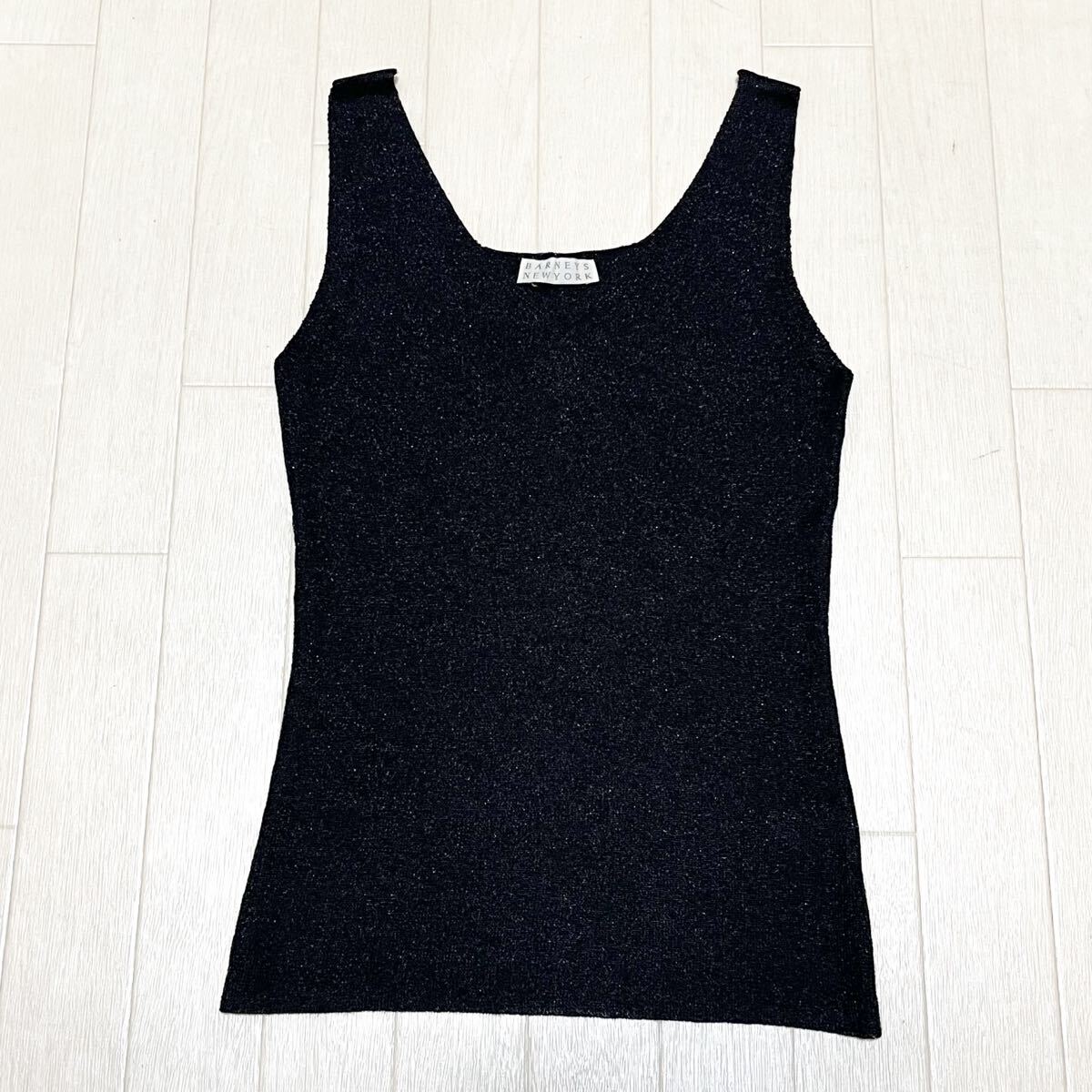 和827★ BARNEYS NEWYORK バーニーズニューヨーク ノースリーブ ニット セーター カットソー 薄手 キラキラ 38 ブラック レディース