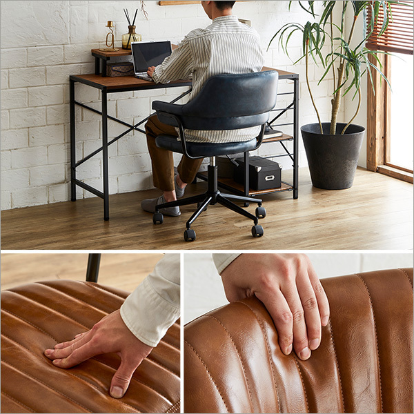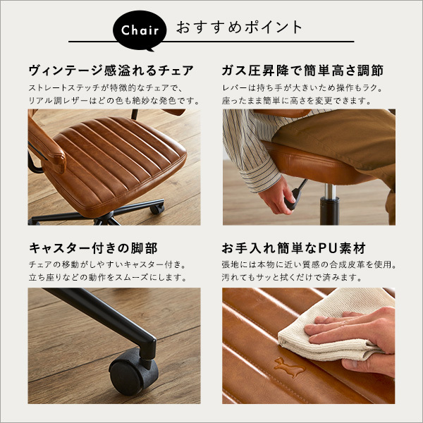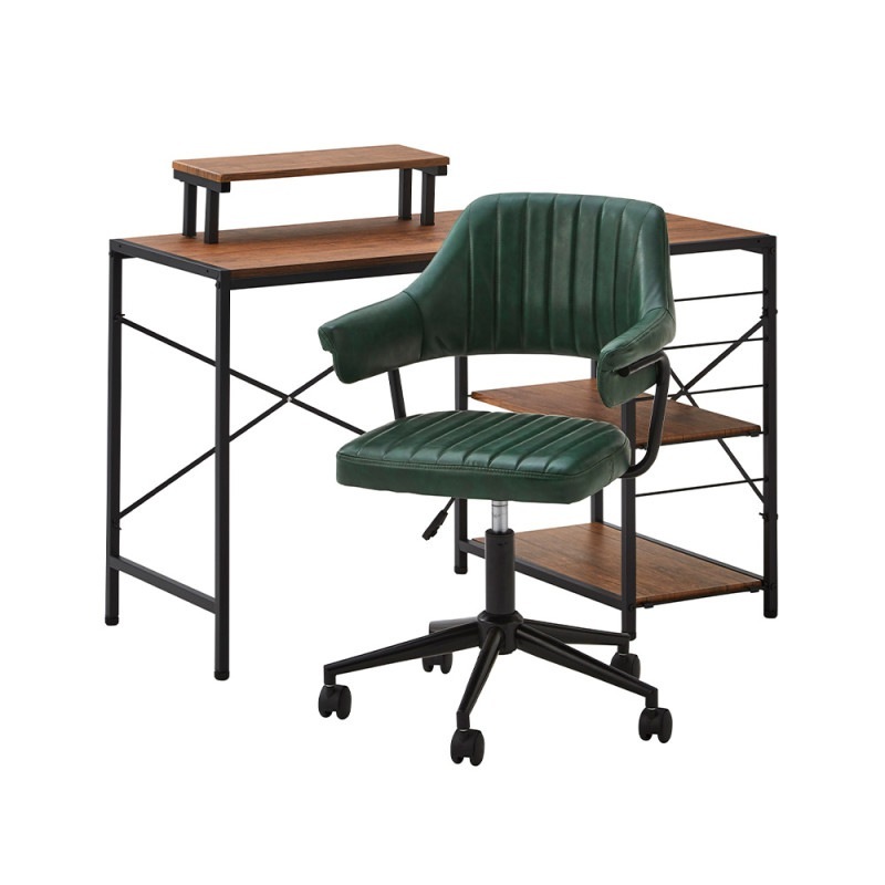 ヴィンテージテイストのL字デスクとガス圧昇降式チェアセット!