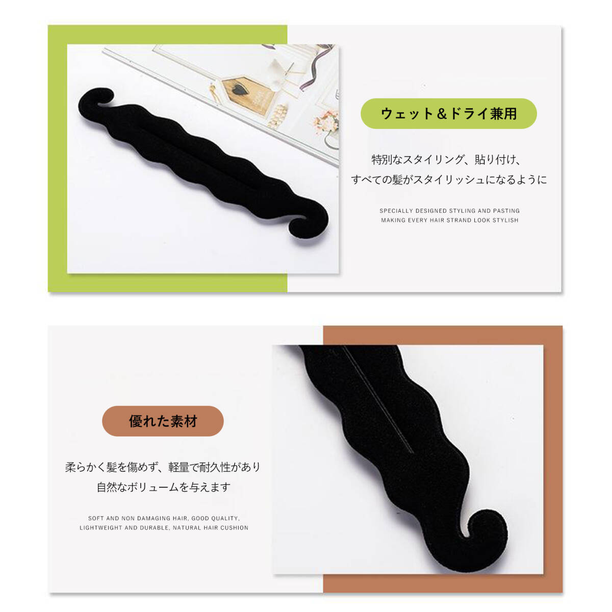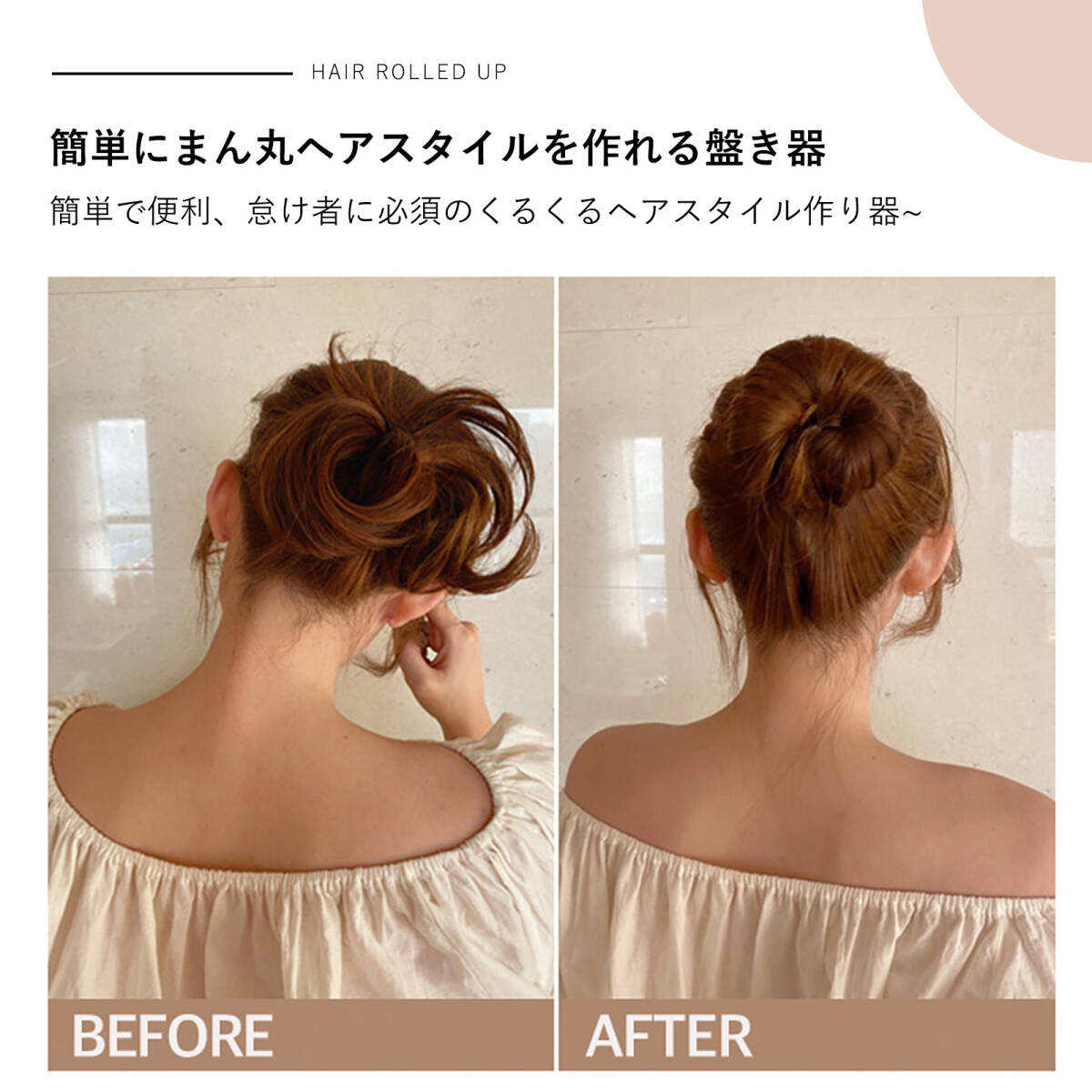 この商品について | 【使い方は簡単】簡単な手順で丸い頭の形が完成します。 【髪に無害】スポンジ素材で作られ、柔らかい質感、髪をケアします。 |