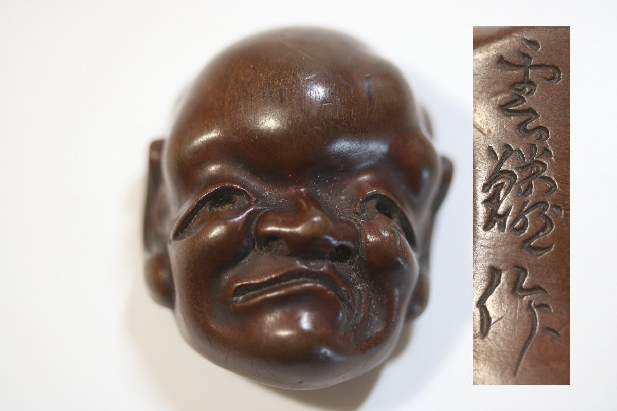 T268 根付 在銘 黄楊 提げ物 アンティーク 古道具 時代もの 54498