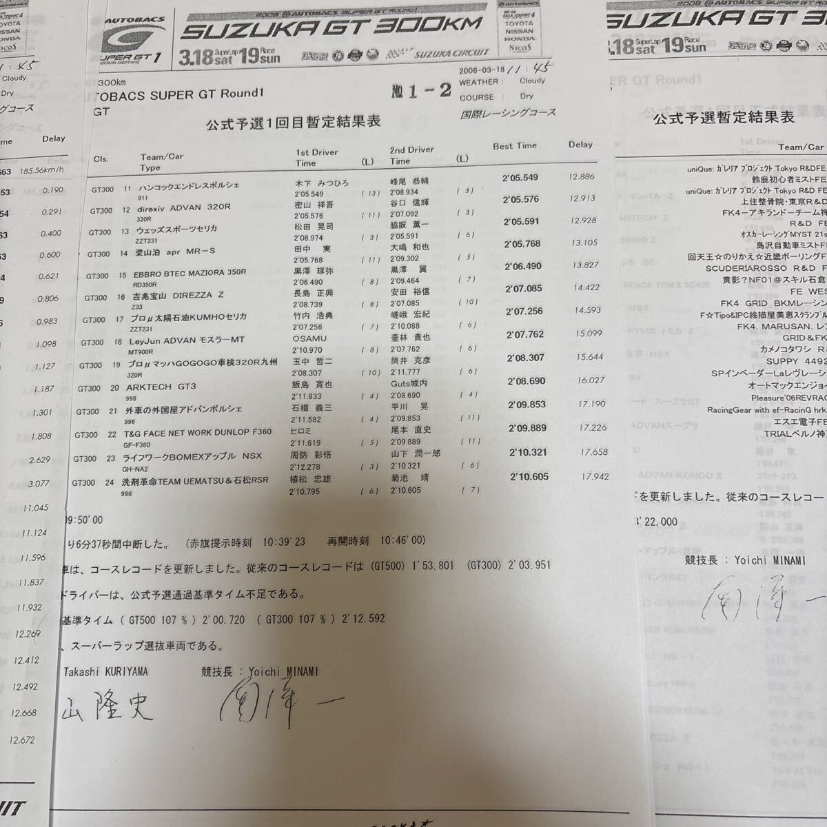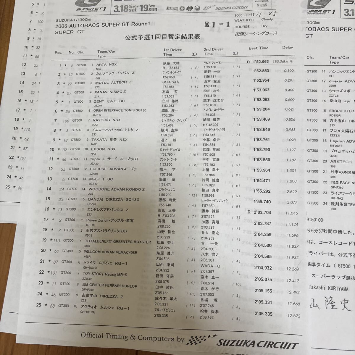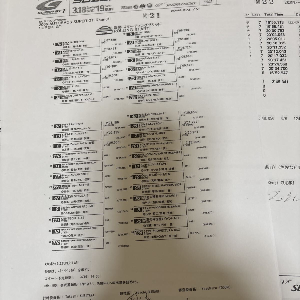 2006年スーパーGTラウンド1 SUZUKA GT 300kmレースのリザルトになります。