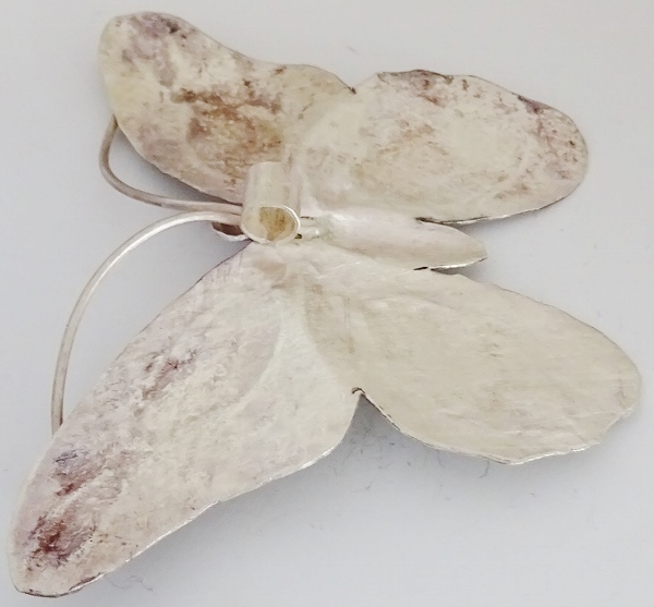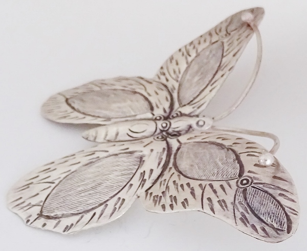 タイ北部に住む山岳民族カレン族のシルバーパーツです。 カレン族シルバーの純度は非常に高く、1つ1つがハンドメイドで丁寧に作られており、個性的なデザインが特徴です。 ネックレス、ペンダントのトップなど様々な用途にお使いいただけます。 大きめの蝶のデザインが美しいです。 ●全体の大きさ:たて約6cm×よこ約8.5cm |