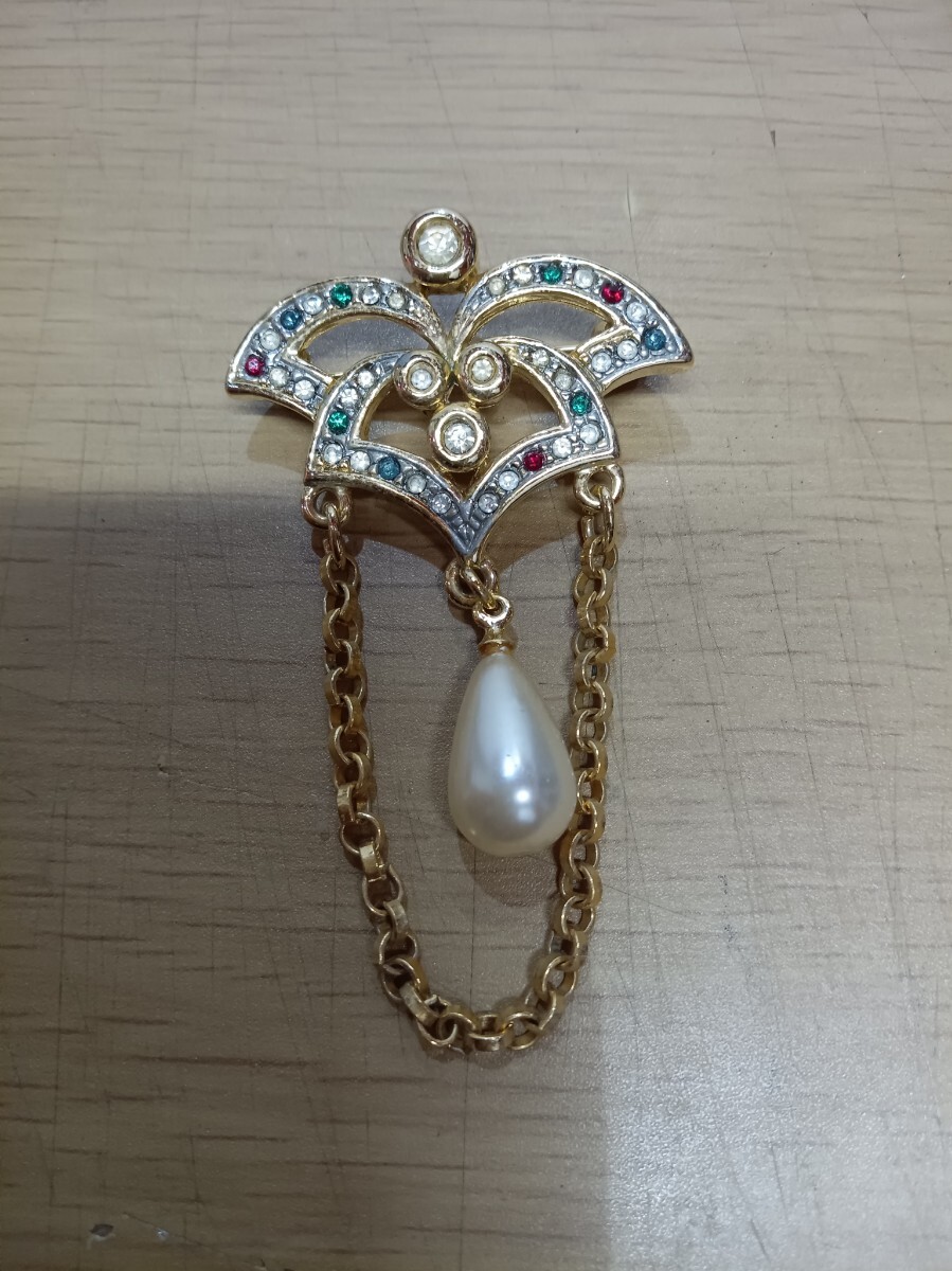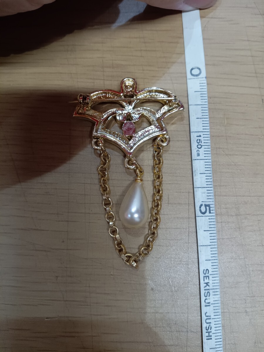レディース アクセサリー ブローチ ラインストーン クリア レッド グリーン ゴールドカラー used