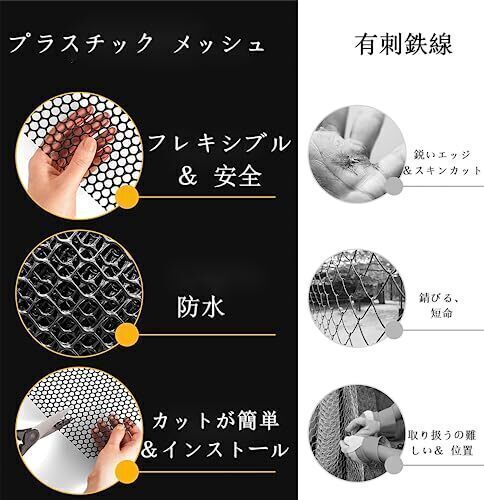 【多目的&幅広い用途】この防獣ネットは、家禽飼育フェンス、庭ネット、播種済み芝生フェンス、建設用バリアネット、ガーディアン警告バリア、工芸用金網フレーム、花用ネット、水生製品のメンテナンス、ガーデンゴルフコースの保護など、多機能な目的を持っています。。造園目的の二次フェンスの構築にも最適です。必要なものに何が含まれるかを自分の領域で管理します
