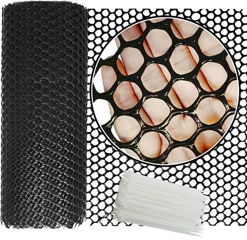 【アップグレードされた素材とユニークなデザイン】プラスチックメッシュの素材は500gsmの高密度、低圧のABSプラスチック粒子で作られ、ワイヤーの厚さは最大1/10インチにアップグレードされます。このプラスチックネット素材は高品質、軽量、耐久性、非毒性、強力な靭性、強力な老化防止、安全性、再利用性、長寿命などの機能を備えており、いつでもニーズを満たすことができる