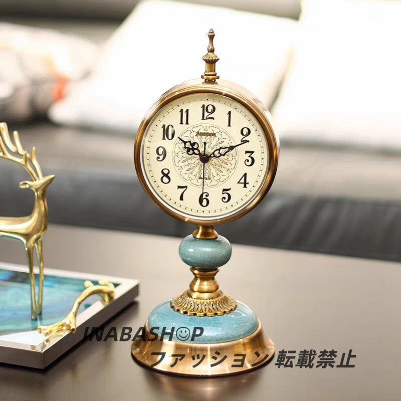 置き時計 静音 銅製 陶器 卓上時計 時計クロック 貫入 卓上飾り 部屋飾り 音がしない ガラス インテリア モダン新築祝い ギフト 引越し祝い