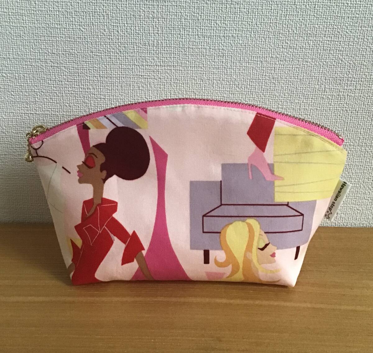 アレキサンダーヘンリー、ファッションガール柄の生地で作成したポーチです。現在は入手困難な生地です。