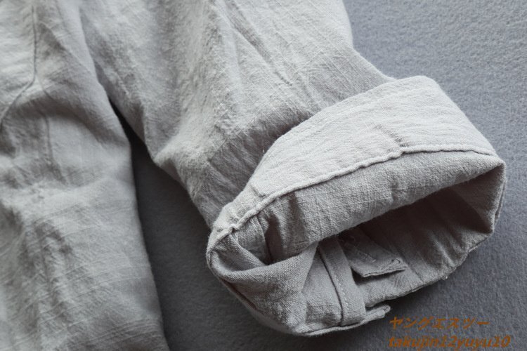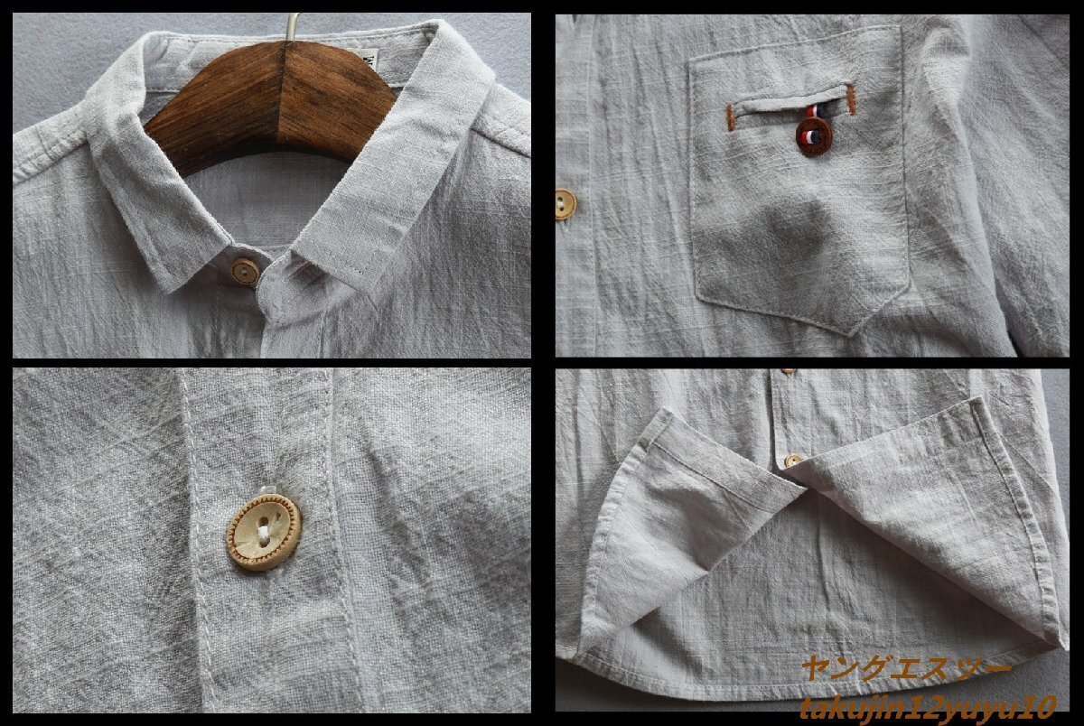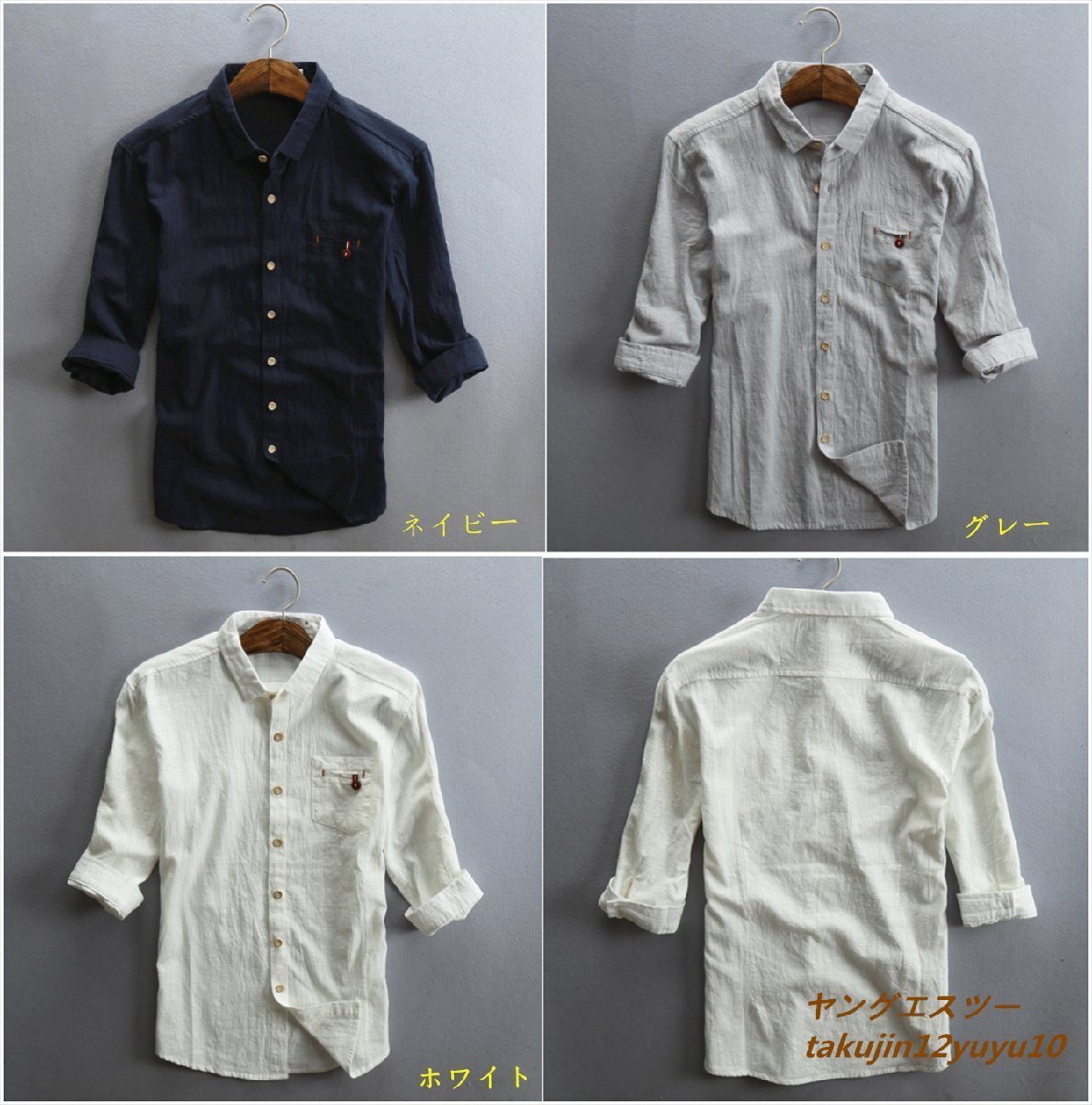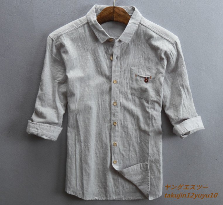 夏新品 リネンシャツ 七分袖シャツ メンズ 半袖シャツ 薄手 サマー 綿麻シャツ 無地 シワ感 トレンド 三色 細身 サイズ選択可 グレー S
