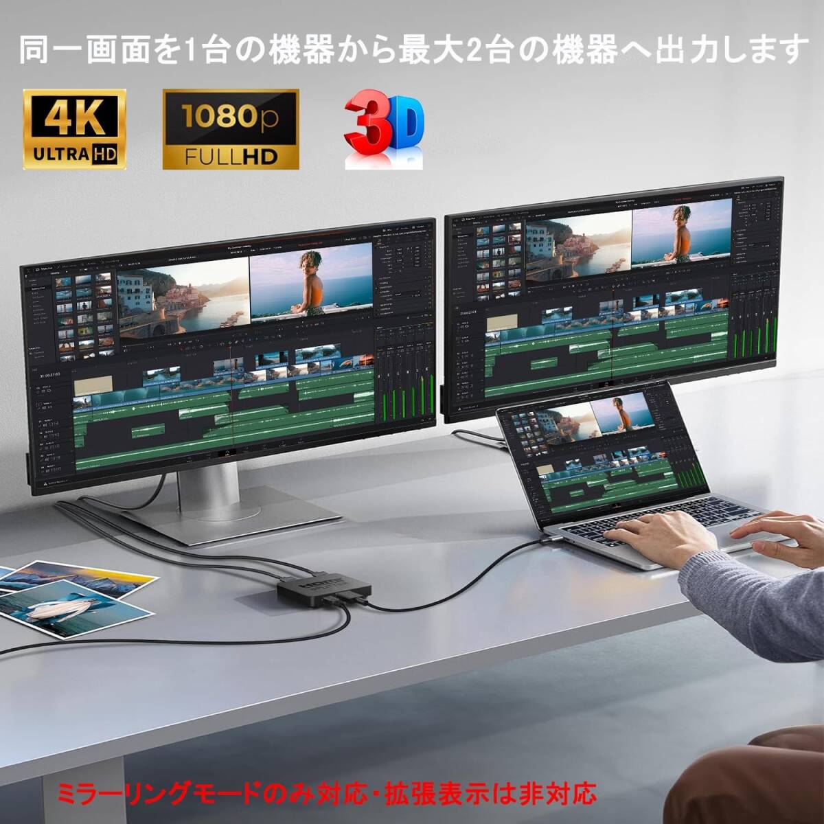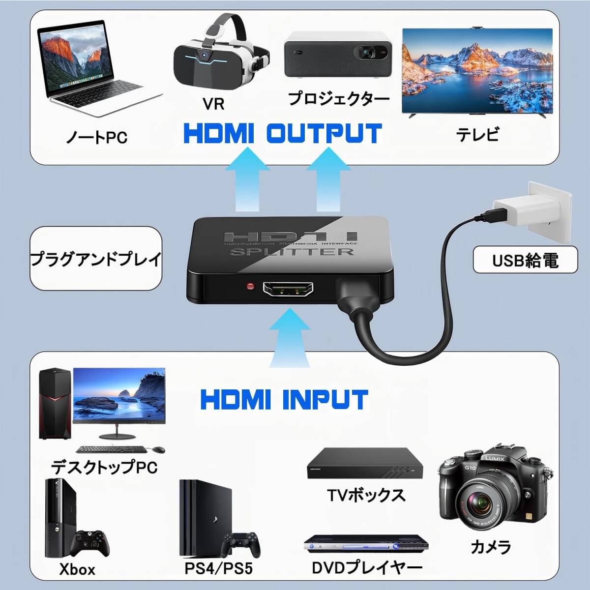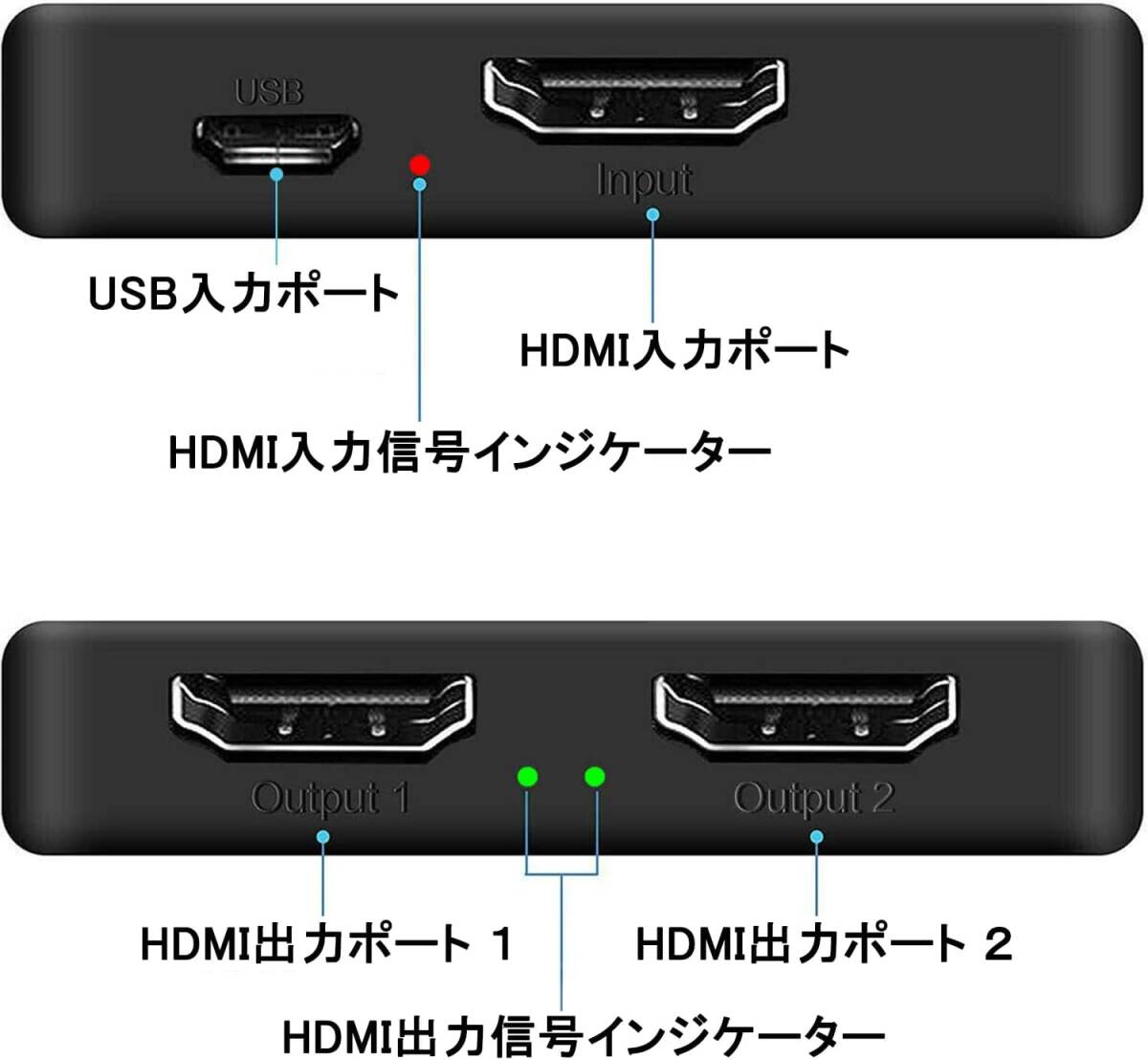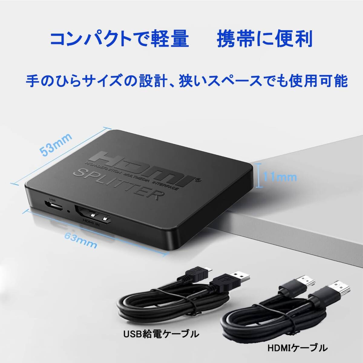 HDMI 分配器 1入力2出力 2画面同時出力 4K/2K/1080p/3D/HD対応