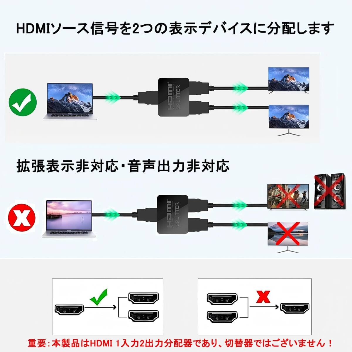 • 【HDMI 分配器 同時出力】:HDMI スプリッター 1入力2出力は、HDMI スプリッター 2画面同時出力、あなたはビデオとオーディオを同時に、損失なしで、遅れなしで得るでしょう。注:【そして両方の出力は同じページを表示します】