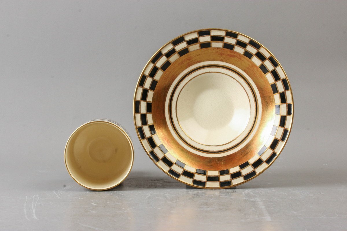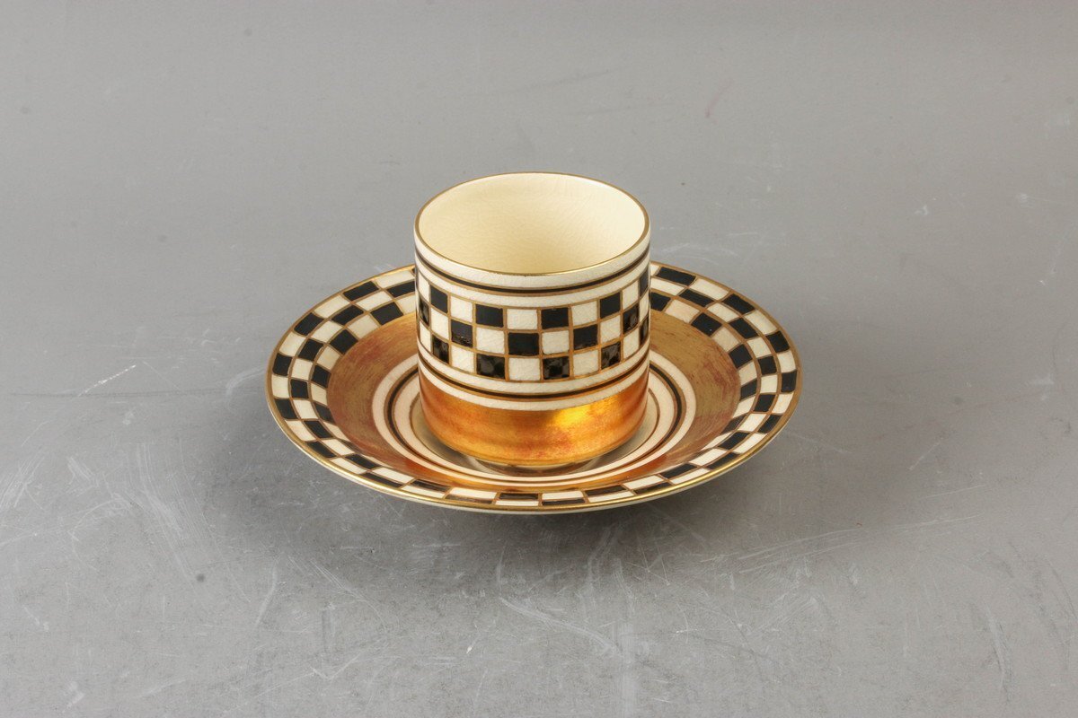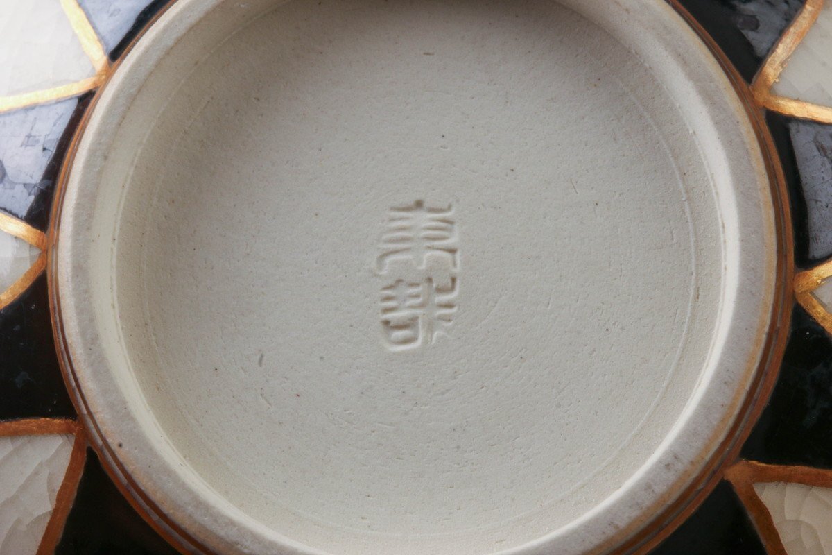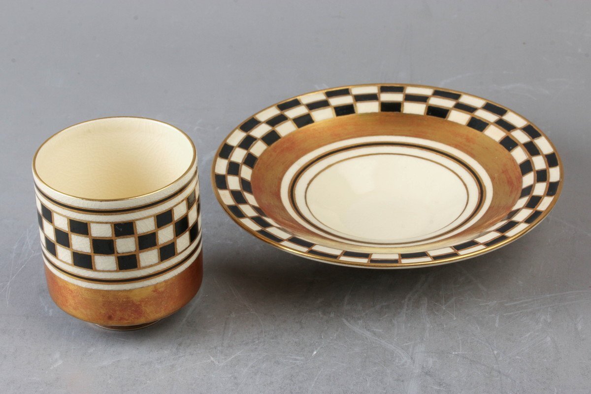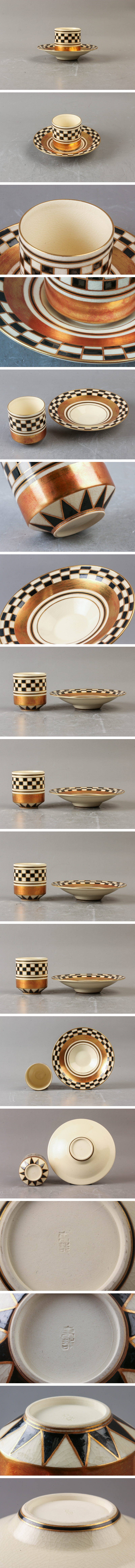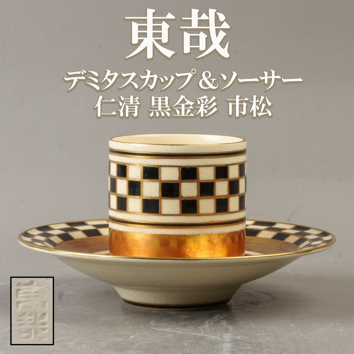 【SAG】東哉 デミタスカップ&ソーサー 仁清 黒金彩 市松 本物保証