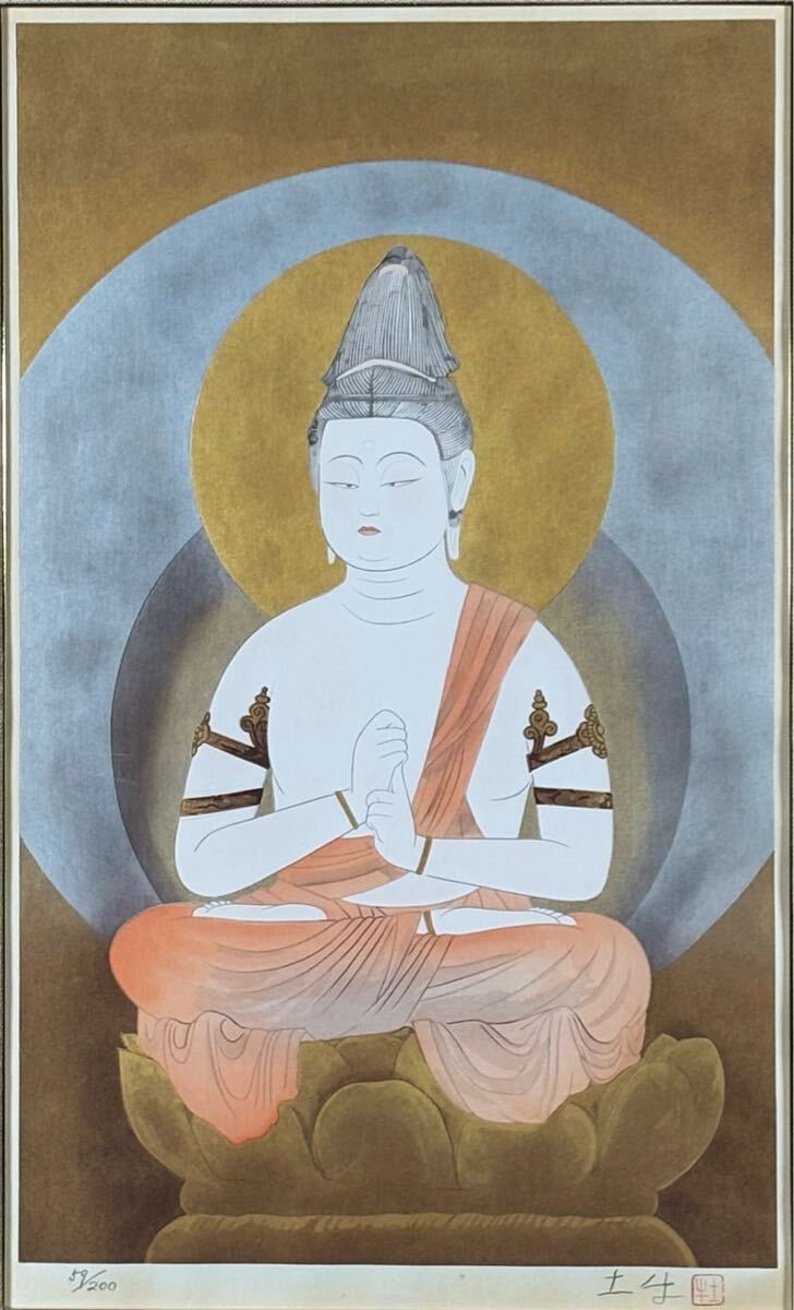【真作】 奥村土牛 『浄心』 59/200 木版画 10号 直筆サイン 証明シール アダチ版画研究所 額装
