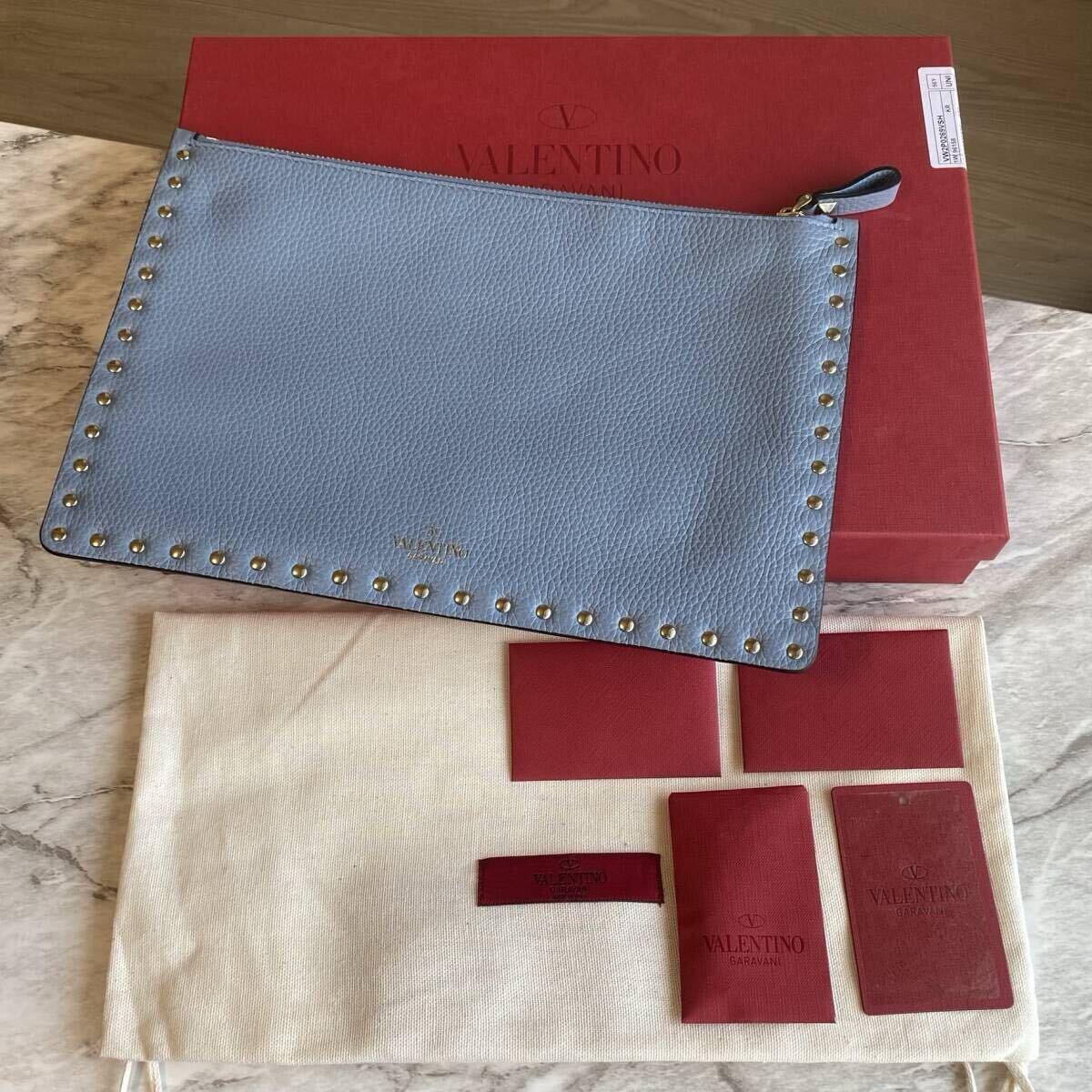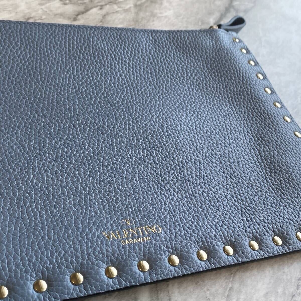 【商品説明】 世界的ラグジュアリーブランド VALENTINO GARAVANI(ヴァレンティノ ガラヴァーニ) の人気シリーズ「ロックスタッズ」クラッチバッグです。 上質なレザーにスタッズをあしらったデザインは、シンプルながらもラグジュアリーな存在感を放ちます。 手持ちでも、バッグインポーチとしても活躍する万能アイテムです。 【おすすめポイント】 ・アイコニックな「ロックスタッズ」デザイン ・上質なレザーを使用し高級感抜群 ・爽やかなライトブルーカラーで差し色に◎ ・大きめサイズで書類やタブレットの収納にも便利 ・クラッチバッグ、ポーチ、バッグインバッグとして幅広く使用可能 ・シンプルながらブランド感をしっかり主張 ・男女問わずユニセックスで使用可能 ・MADE IN ITALYの丁寧なつくり 【商品】ロックスタッズ クラッチバッグ(ユニセックス) 【商品コンディション】 新品・未使用・正規品・本物 ※新品未使用品ですが、店頭展示品のため微細な傷や汚れがある場合がございます。 外箱にはスレ等がある場合がございます。あらかじめご了承ください。 【サイズ】縦20cm × 横30cm マチなし 【カラー】ライトブルー 【素材】レザー 【付属品】 ・ブランド箱 ・ブランドオリジナル保存袋