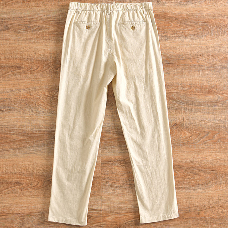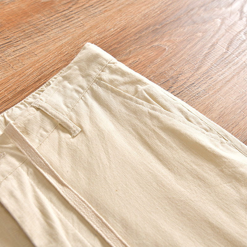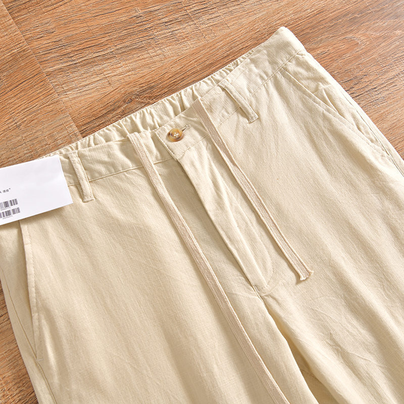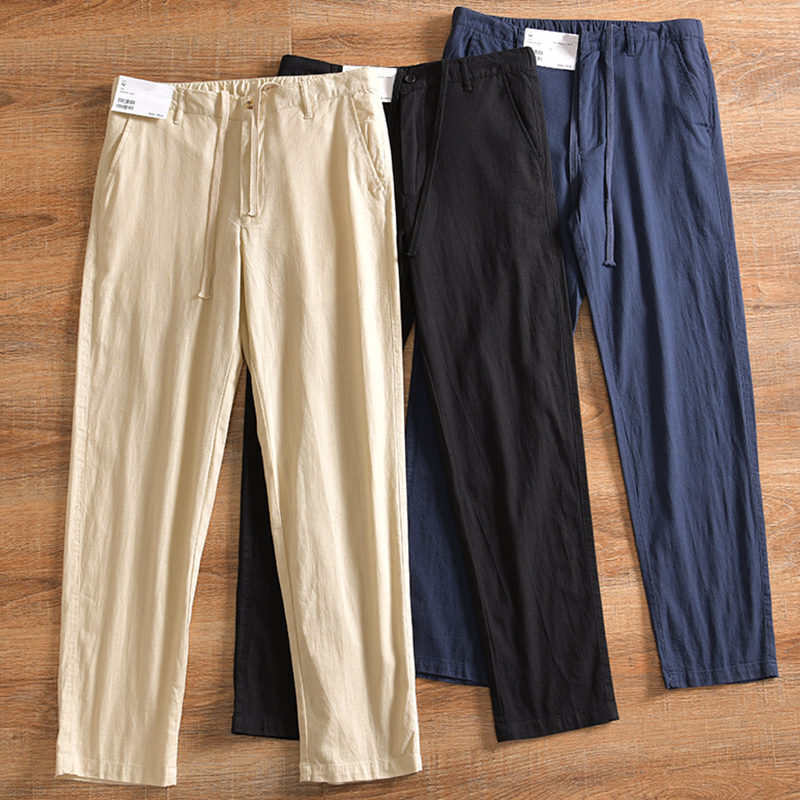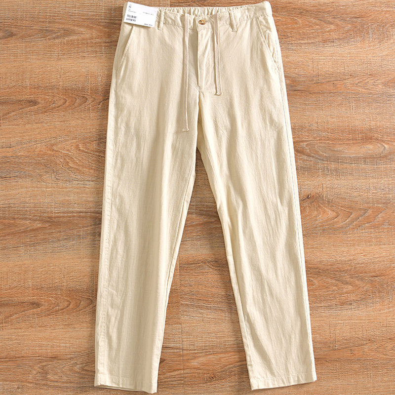 Y6342-XL ベージュ 新品 リネン ストレートパンツ イージーパンツ 九分丈 綿麻混 通気 メンズ ビジネス サマー ウエストゴム カジュアル