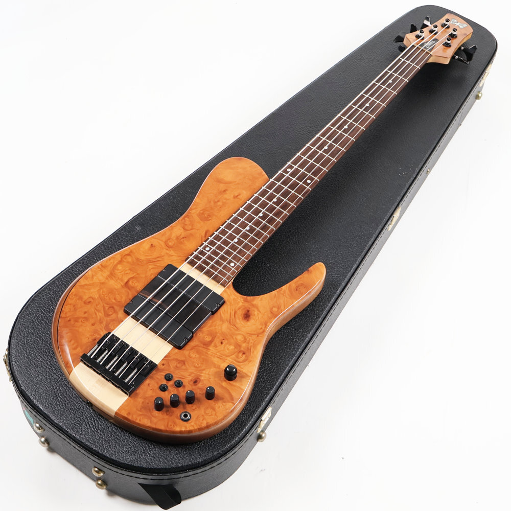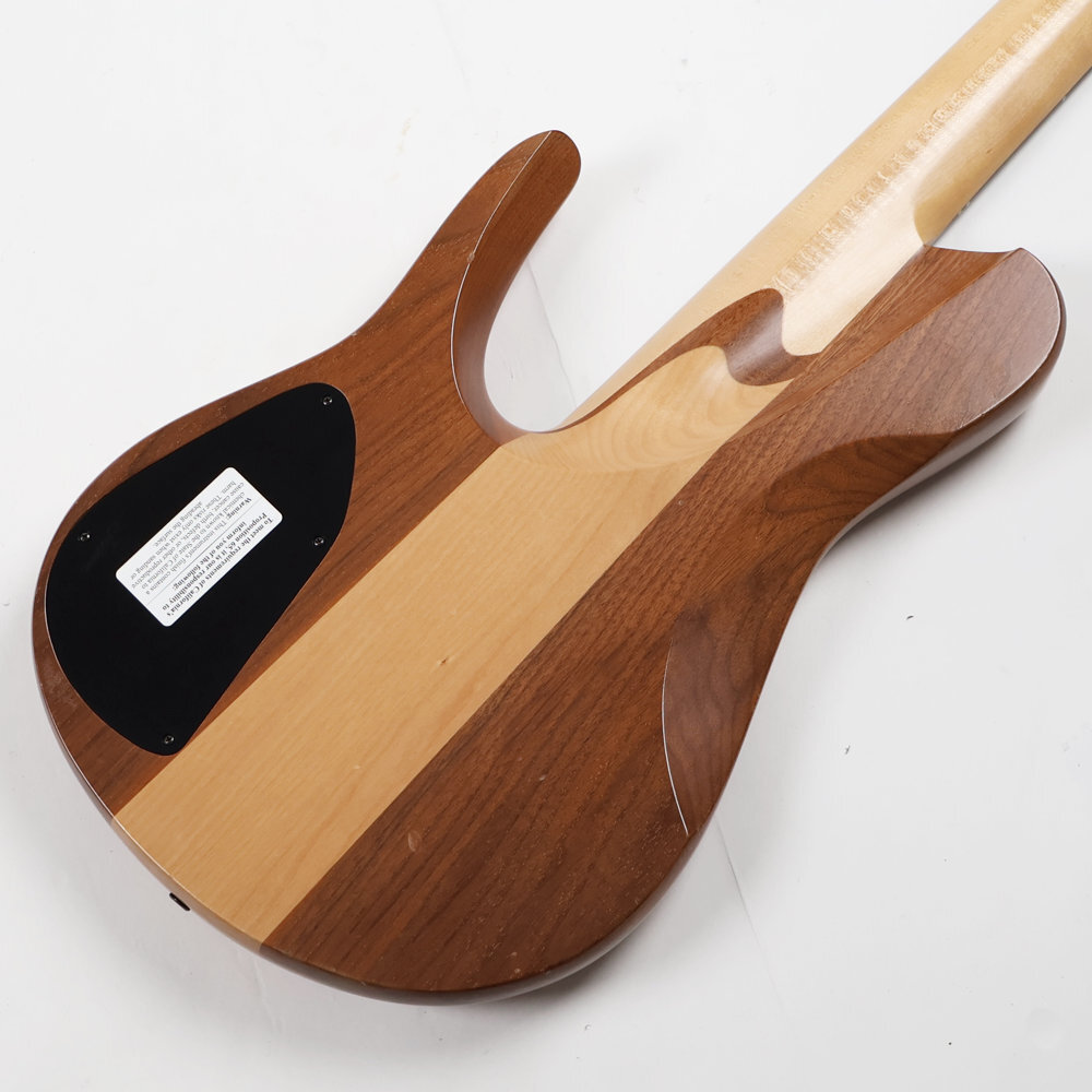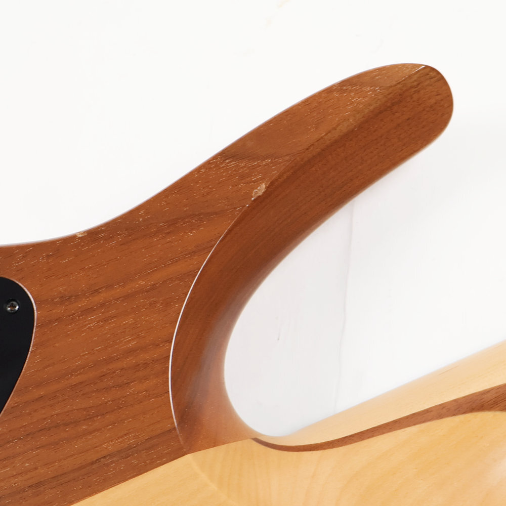 ウォルナットボディにマドローナバールトップ、メイプル3pのスルーネックにマダガスカルキングウッド指板を採用しています。