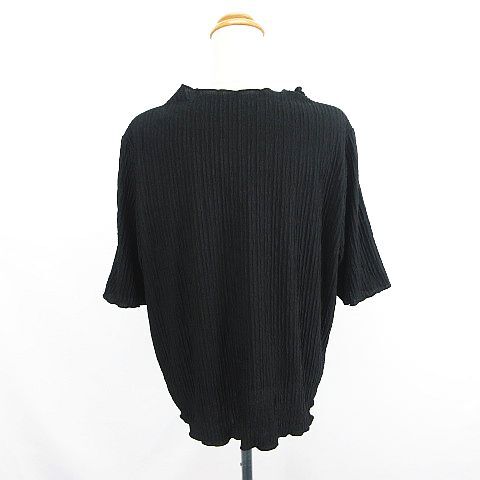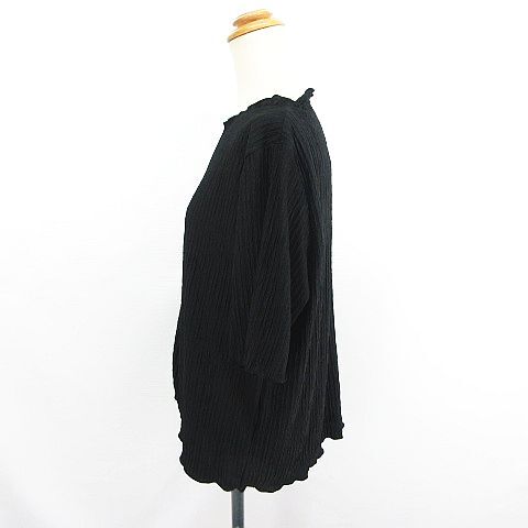未使用品 aimee que カットソー 五分袖 ジャガード メロウ 前後2WAY 大きいサイズ ストレッチ 4L ブラック ※EKM レディース