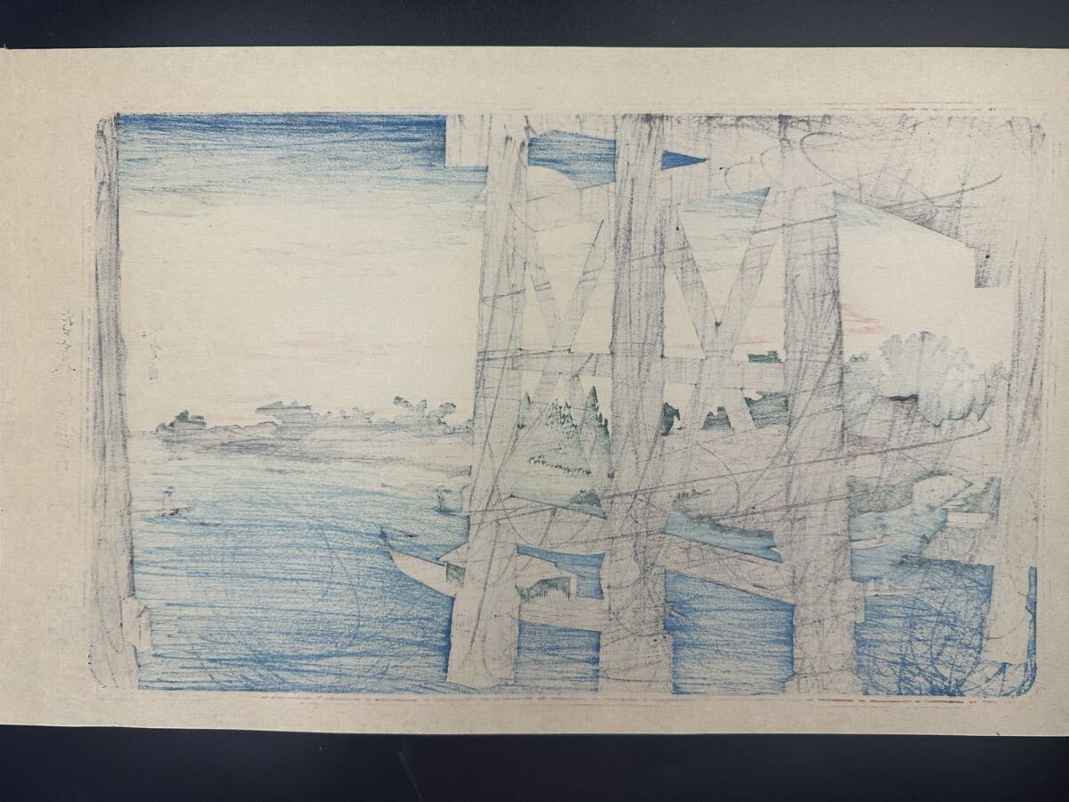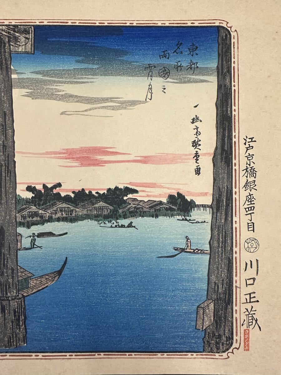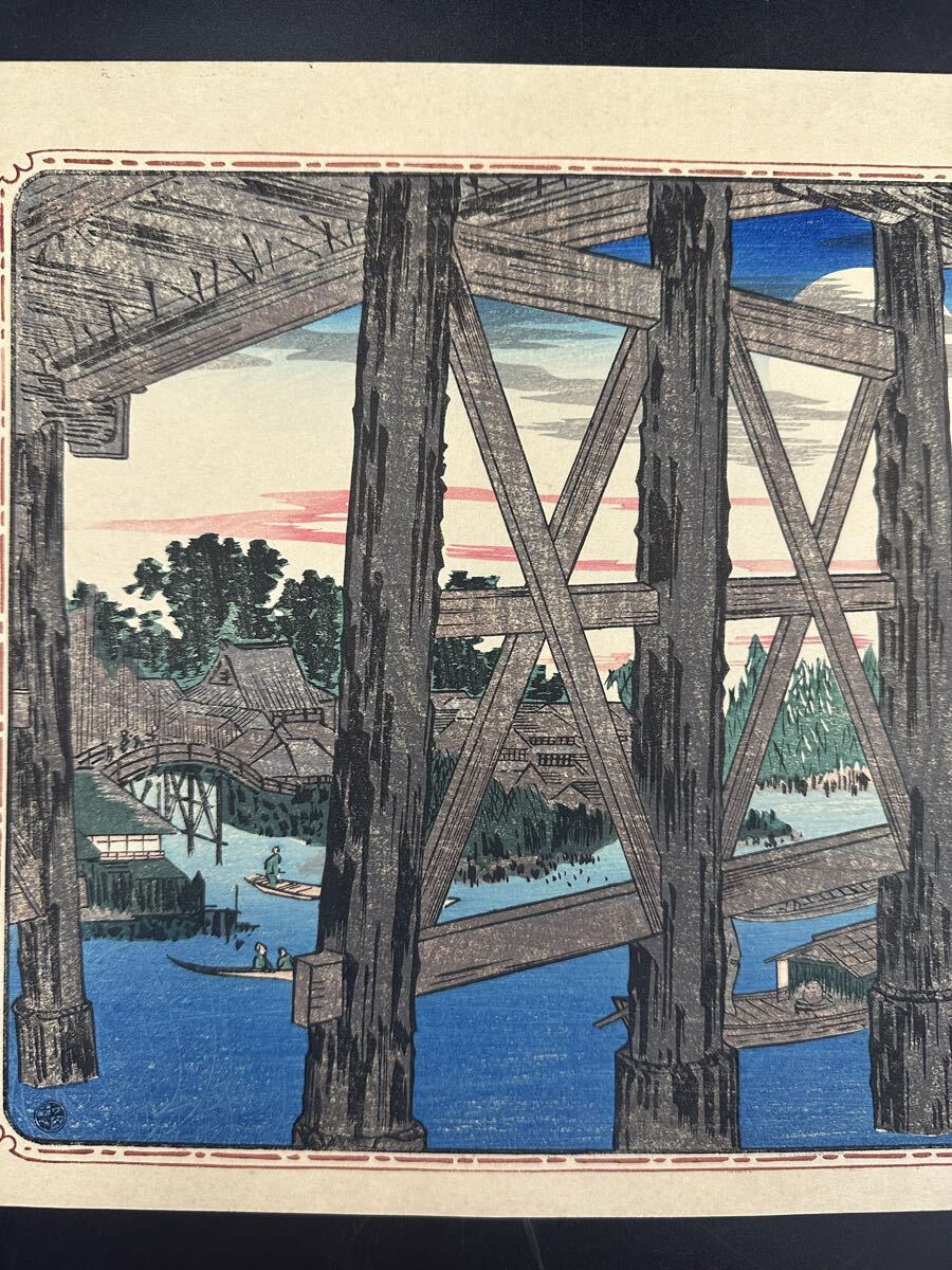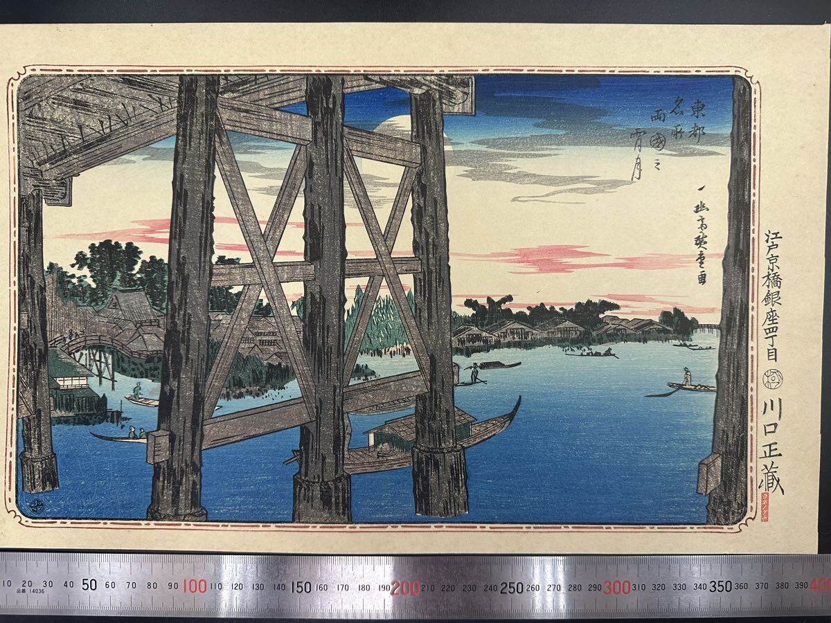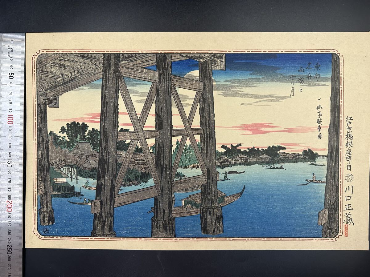 【真作】大正期 浮世絵木版画 歌川広重「東都名所 両国之宵月」名所絵 大判 錦絵 保存良い