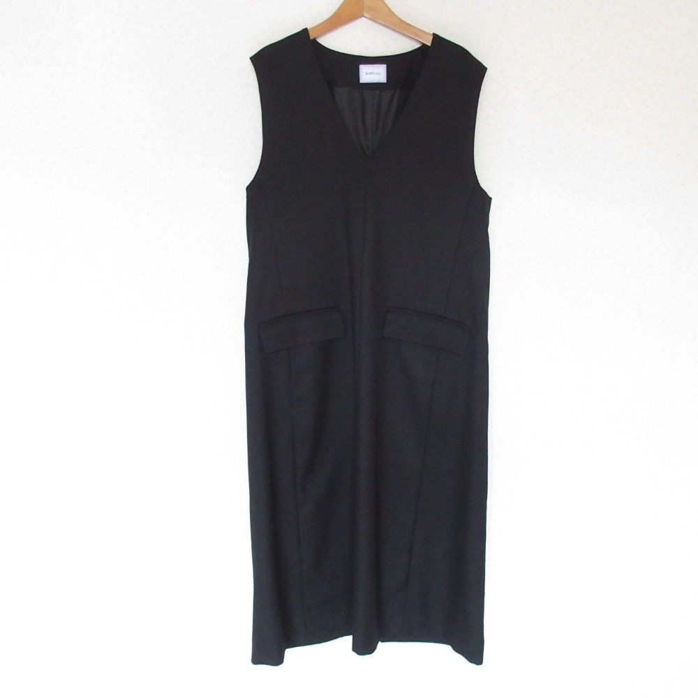 美品 SHIPS シップス any ノースリーブ ストレッチ ロングワンピース ブラック