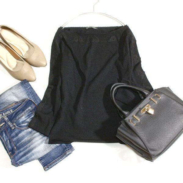 レースの付いた、綺麗めストレッチニットプルオーバーです。