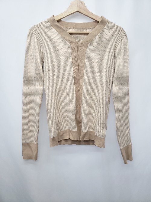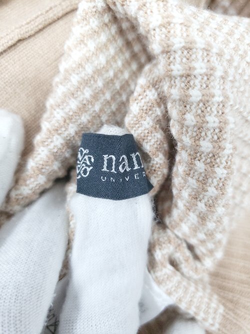 ◇ ⊆ nano universe ナノユニバース ボーダー柄 長袖 ニット セーター サイズF ライトベージュ系 レディース E