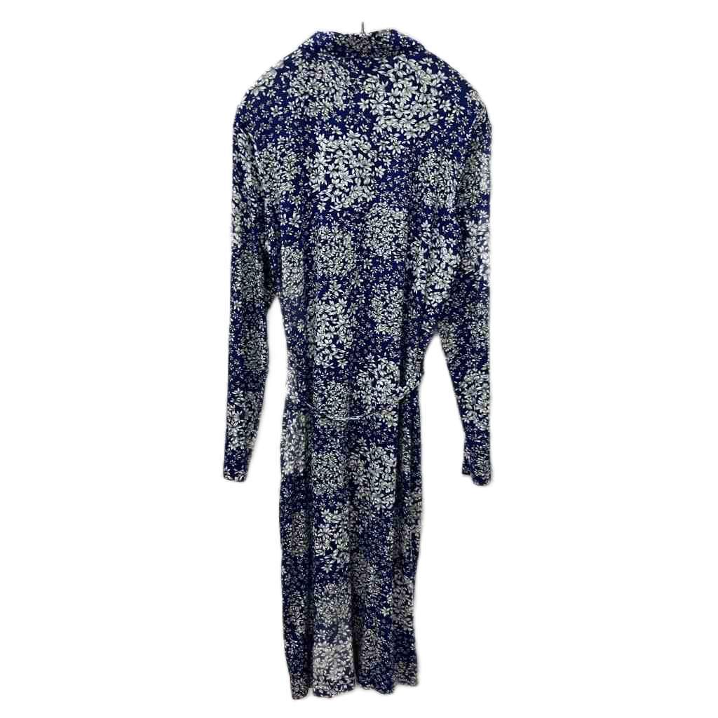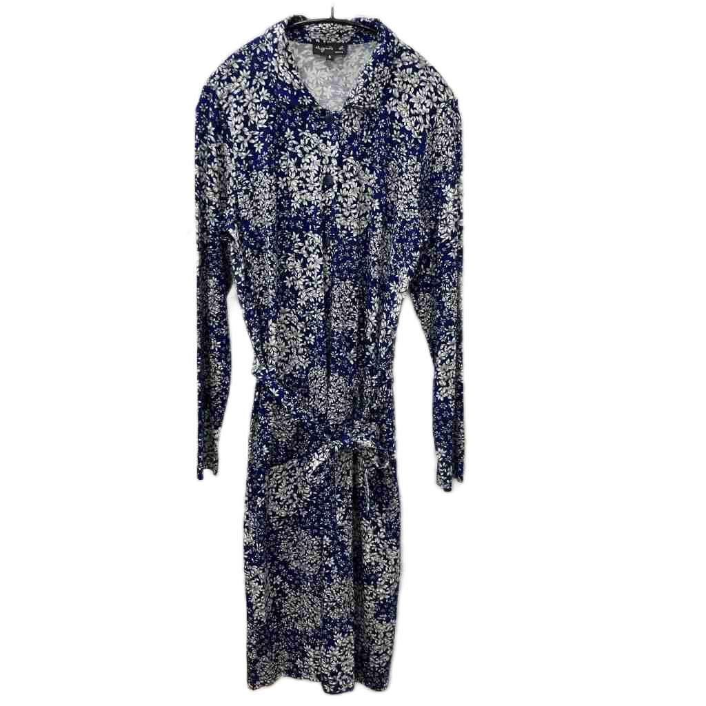 アニエスベー agnes b. 美品 ワンピース 長袖 ミモレ ロング 総柄 花柄 2 M 青 ブルー 白 ホワイト Q972JCD3 レディース