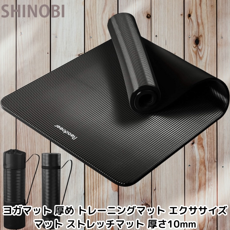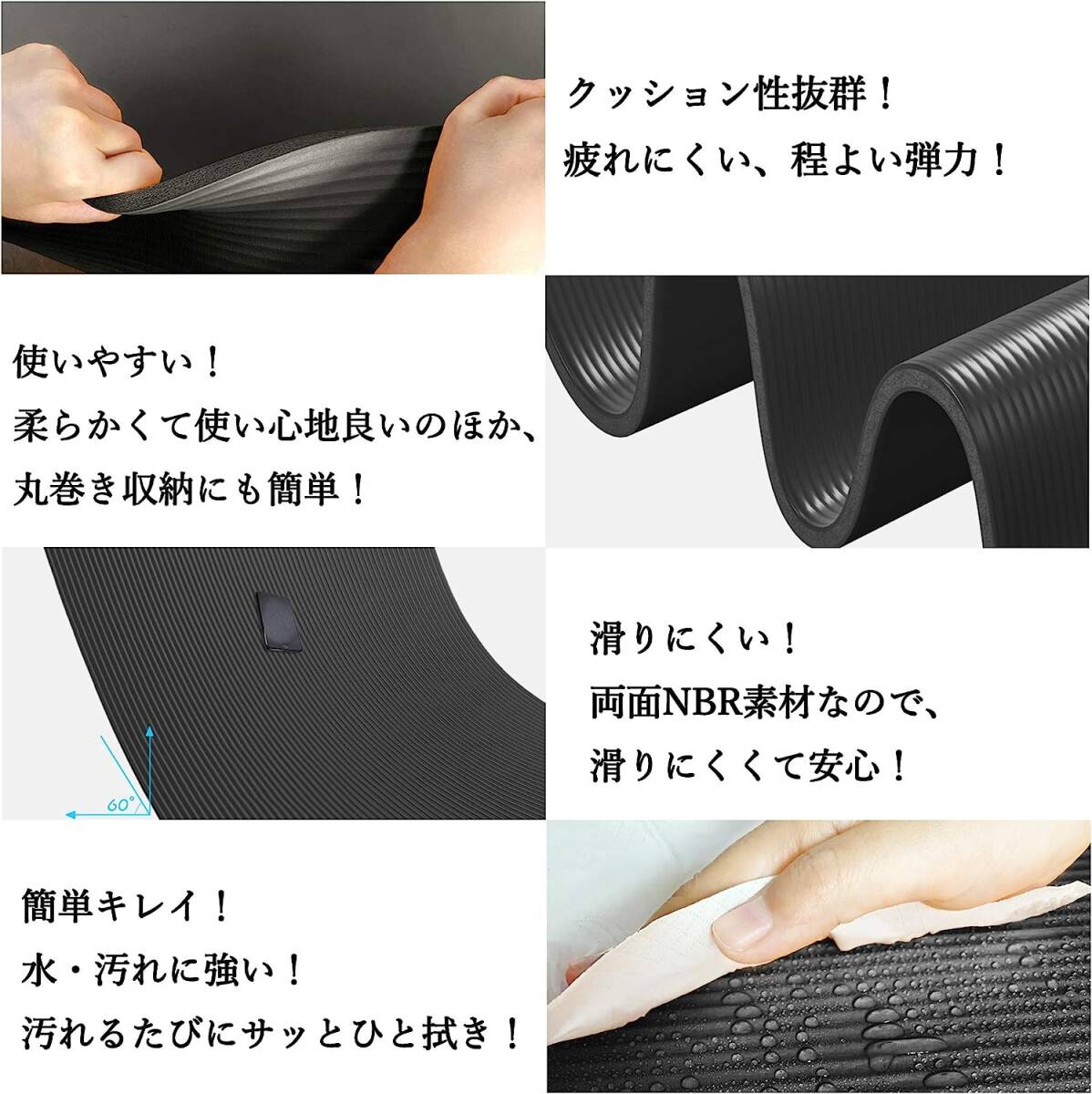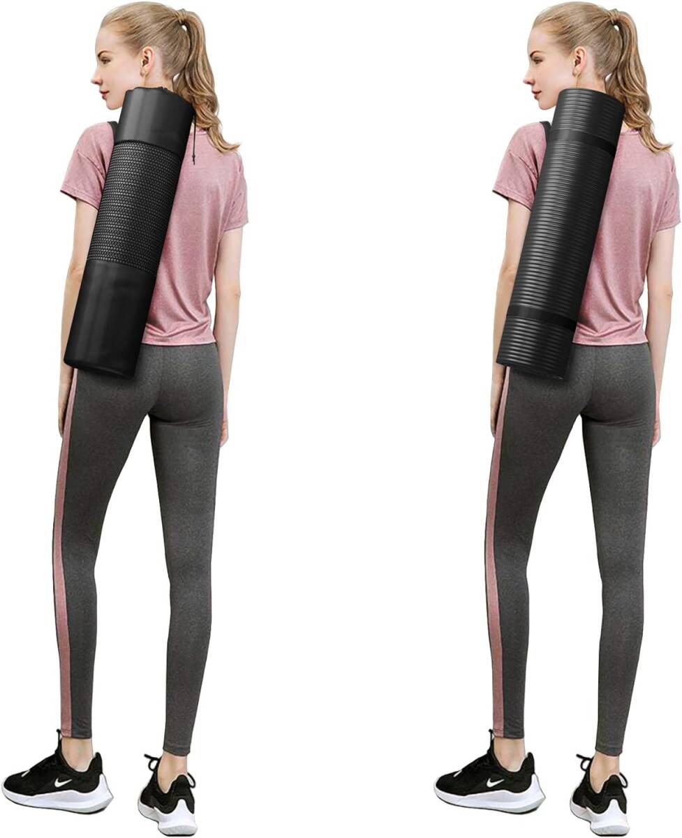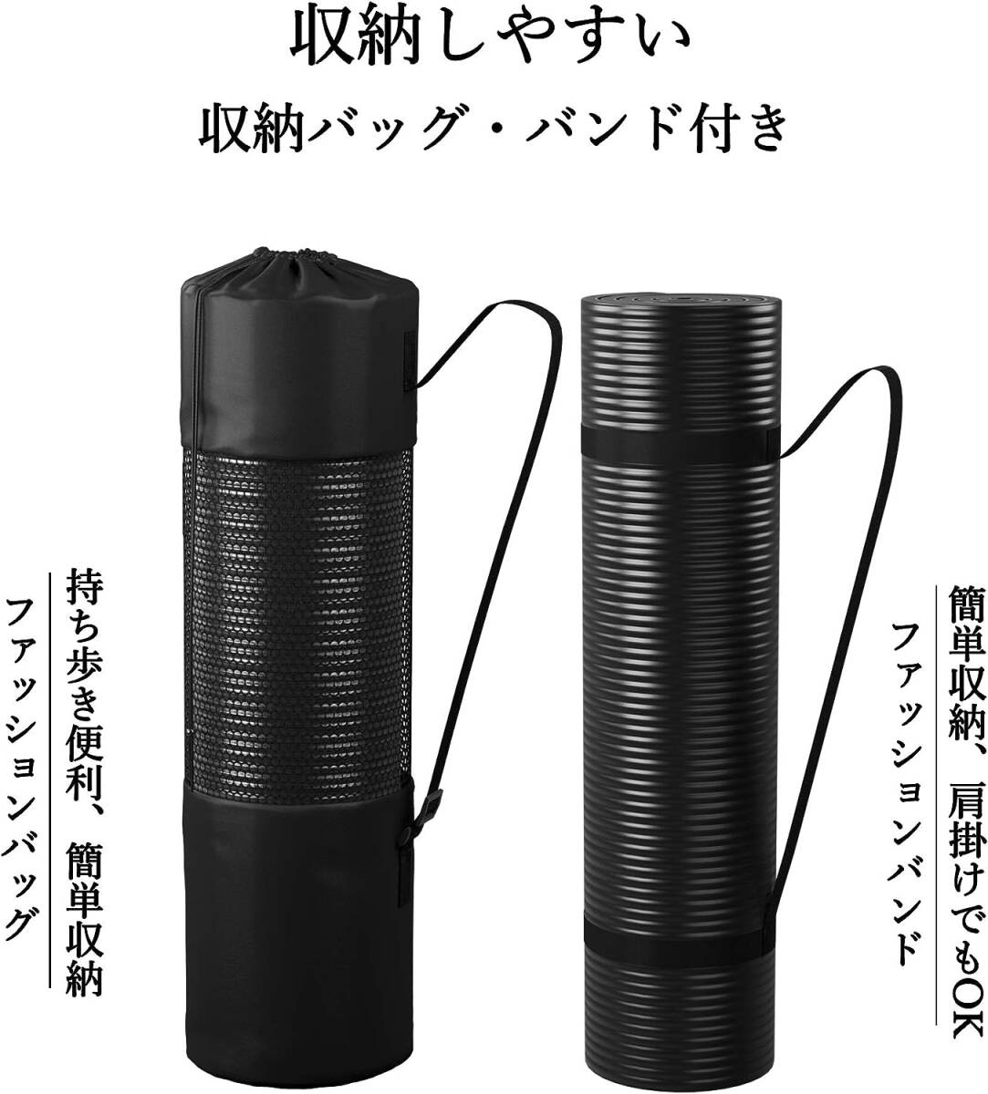 ヨガマット トレーニングマット エクササイズマット ストレッチマット 179長さ x 60幅 x 1厚み (cm) 収納バンドと収納バッグ付き ブラック