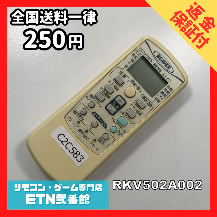 C2C583 【送料250円】エアコン リモコン / BEAVER ビーバー RKV502A002 冷房 暖房 動作確認済み★即発送★