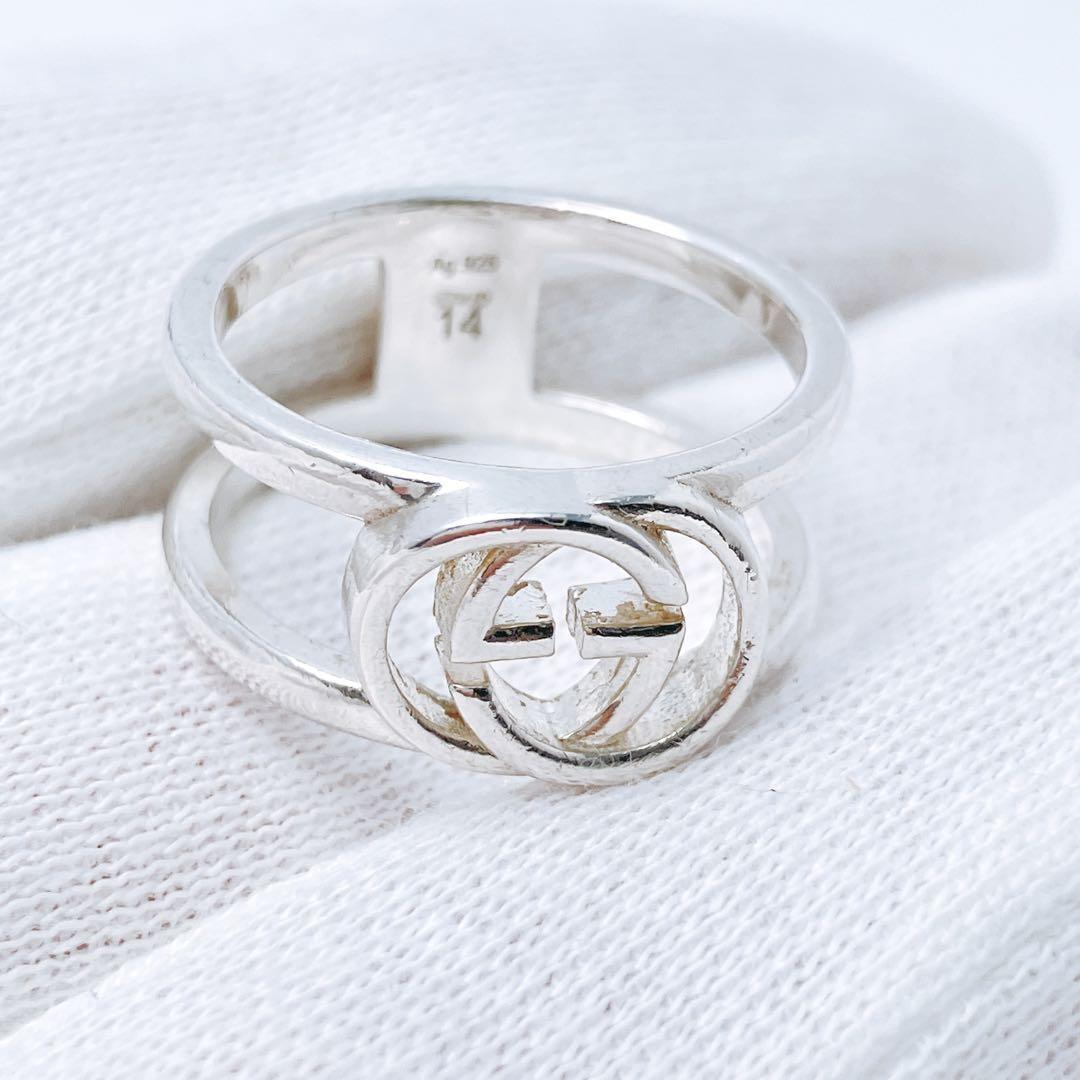 洗浄済 グッチ GUCCI 925 リング 指輪 シルバー OT472 メンズ レディース アクセサリー インターロッキング